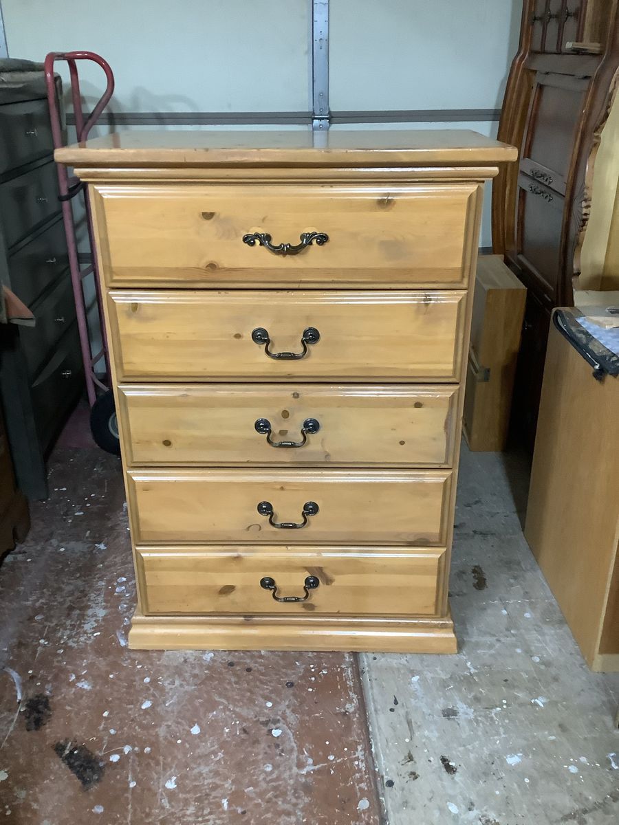Call or text Bill at 801-721-7337. Asking $140.00 for this dresser that has 5 drawers tongue & grove finished. It’s in good condition. I live in Layton. Measures 32w x 44h x 18d.