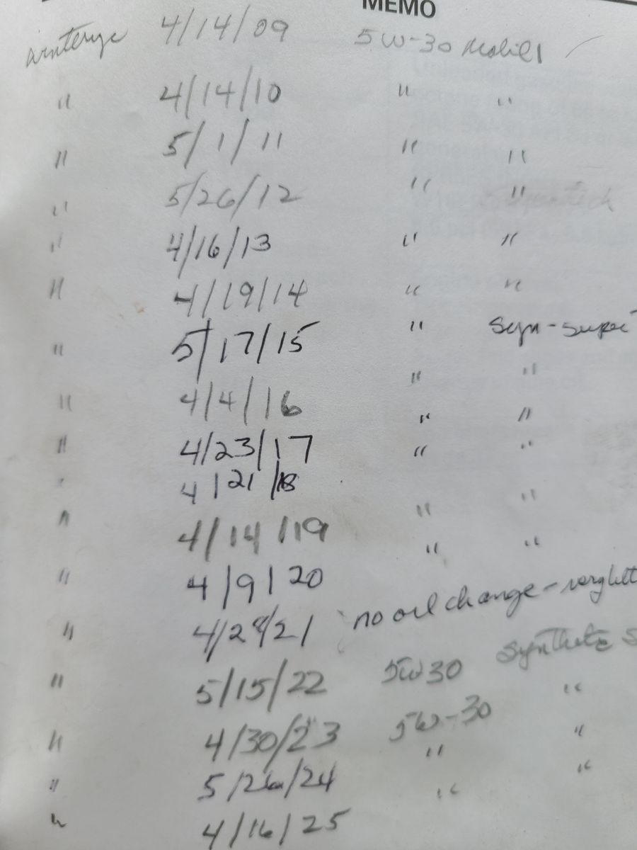 Oil changed annually.