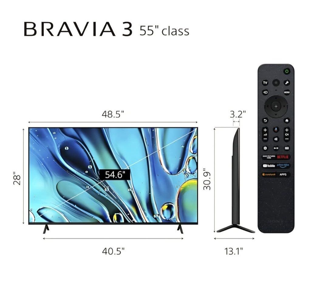 Sony 55-Inch 4K Ultra HD BRAVIA 3 LED Smart TV with Google TV, LED Flat Screen, Dolby Vision HDR, Google TV, Exclusive PS5 Features, (K-55S30)