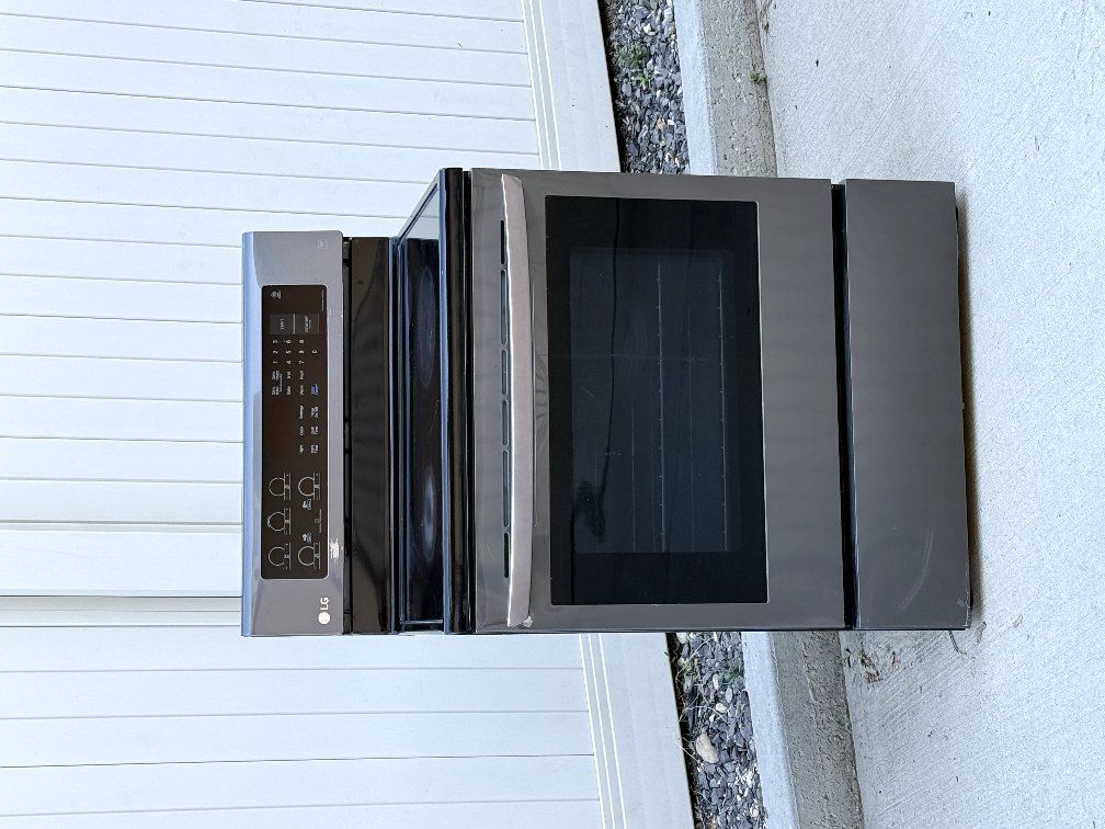 Sold as is. Oven works. Stove works. Only issue is the cracked glass for front left burner. retail price $1200. local delivery available.