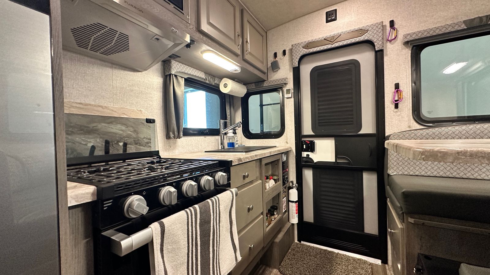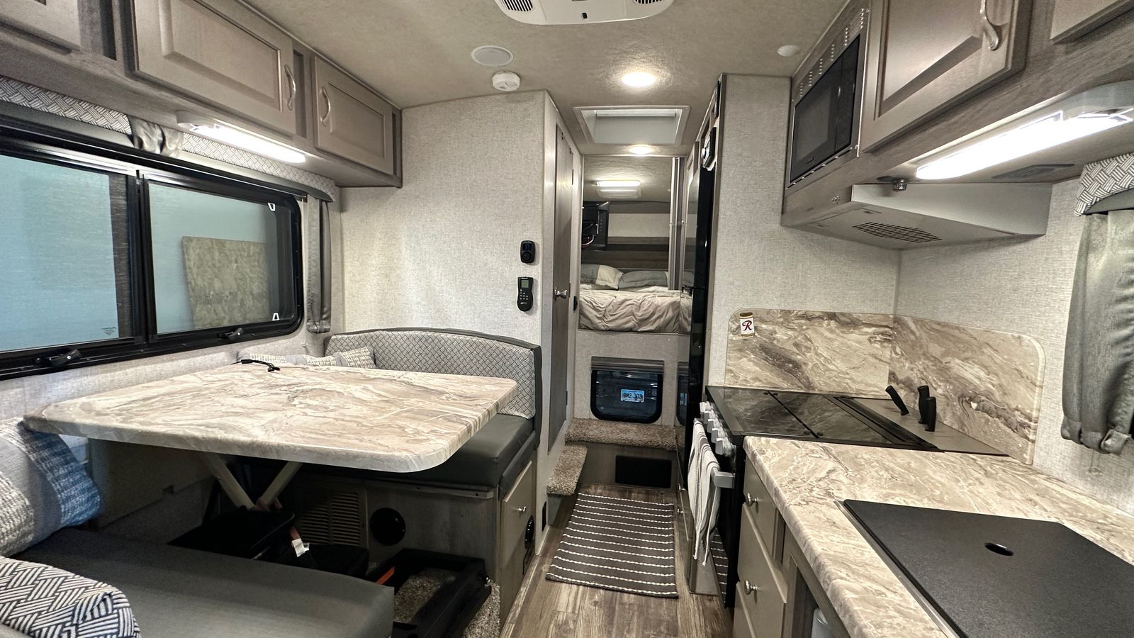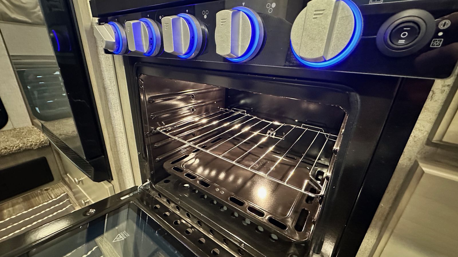 There is one cosmetic blemish on the exterior, visible in picture on right side of RV, plus one close-up picture…..one of the decals started to peel off as I was removing the plethora of manufacturer advisement and marketing stickers that come with all new RVs. As I was removing one of them, the decal started to come off, I reattached the decal, but it’s noticeable. Otherwise, this camper is pristine inside and out.