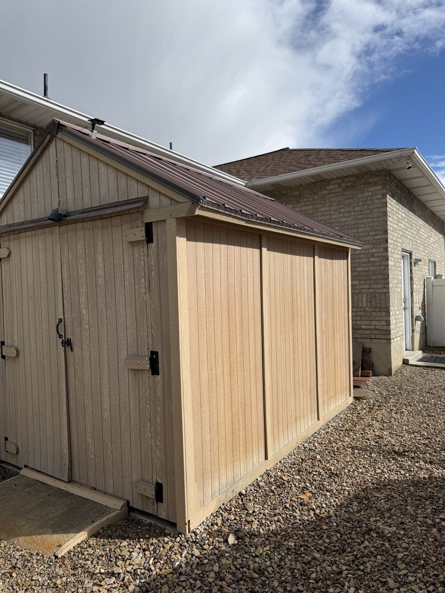 Custom Built Shed. Metal Roof, MDF board, wired for electricity. 12 ft 3 inches long 8 ft 4 inches wide 7 ft 1 in to roof plus rafter space. $2,100.00 You must come and move it.