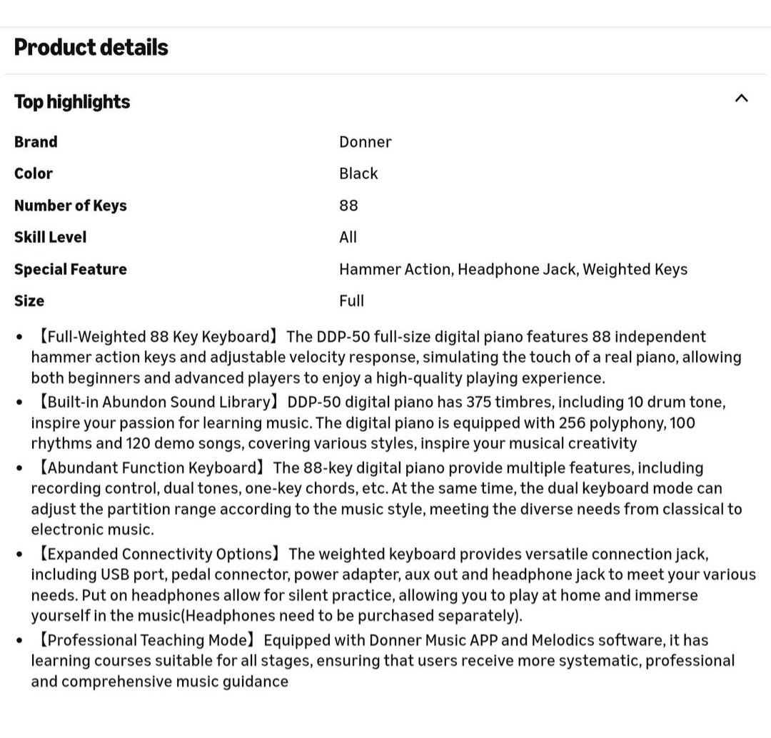 Donner DDP-50 Weighted Digital Piano 88 key Keyboard for Beginner, Full Size Electric Piano Keyboard with Furniture Stand and 3 Pedal Unit