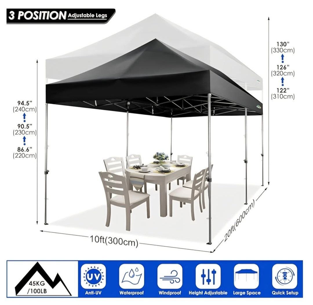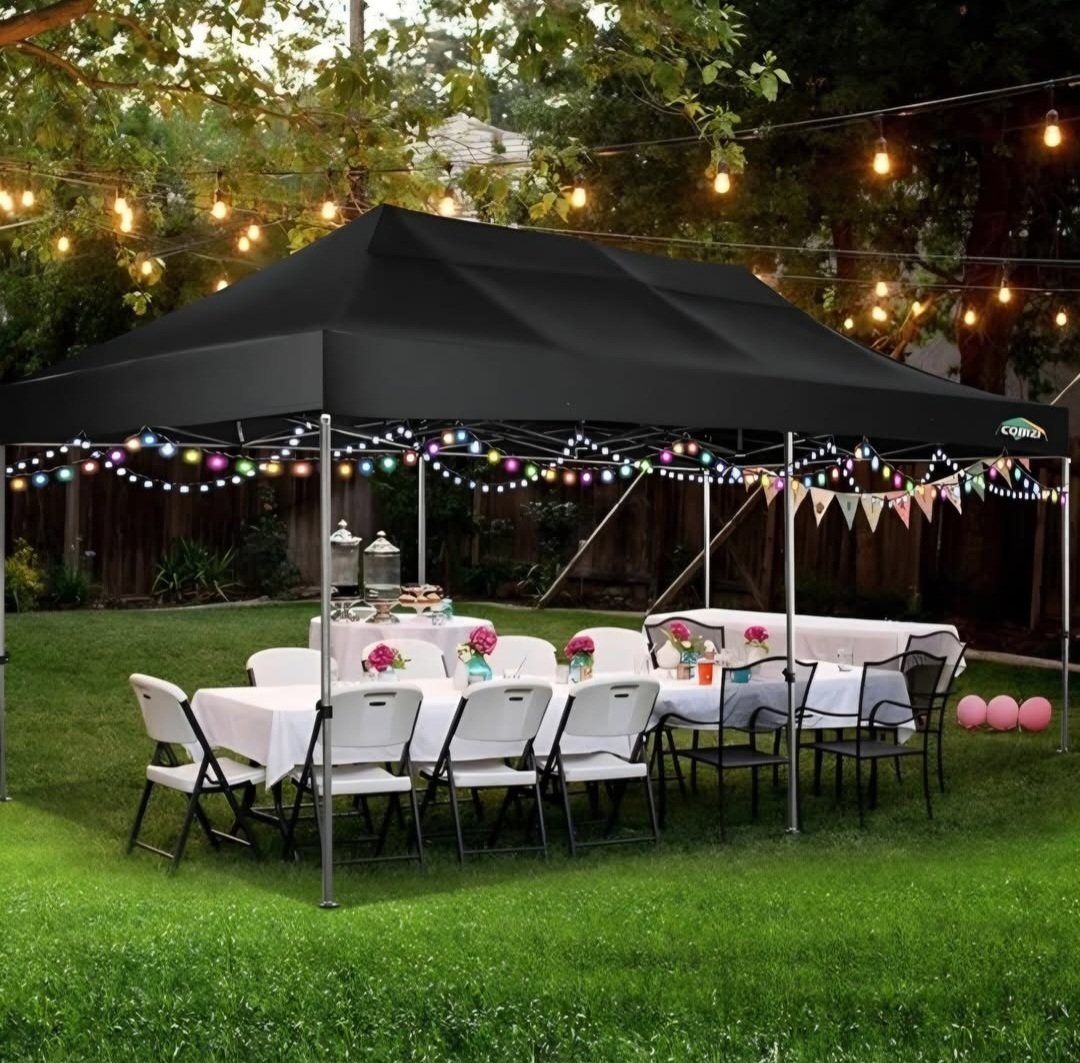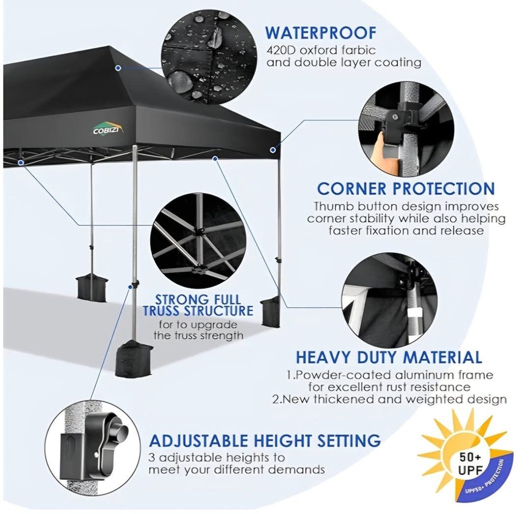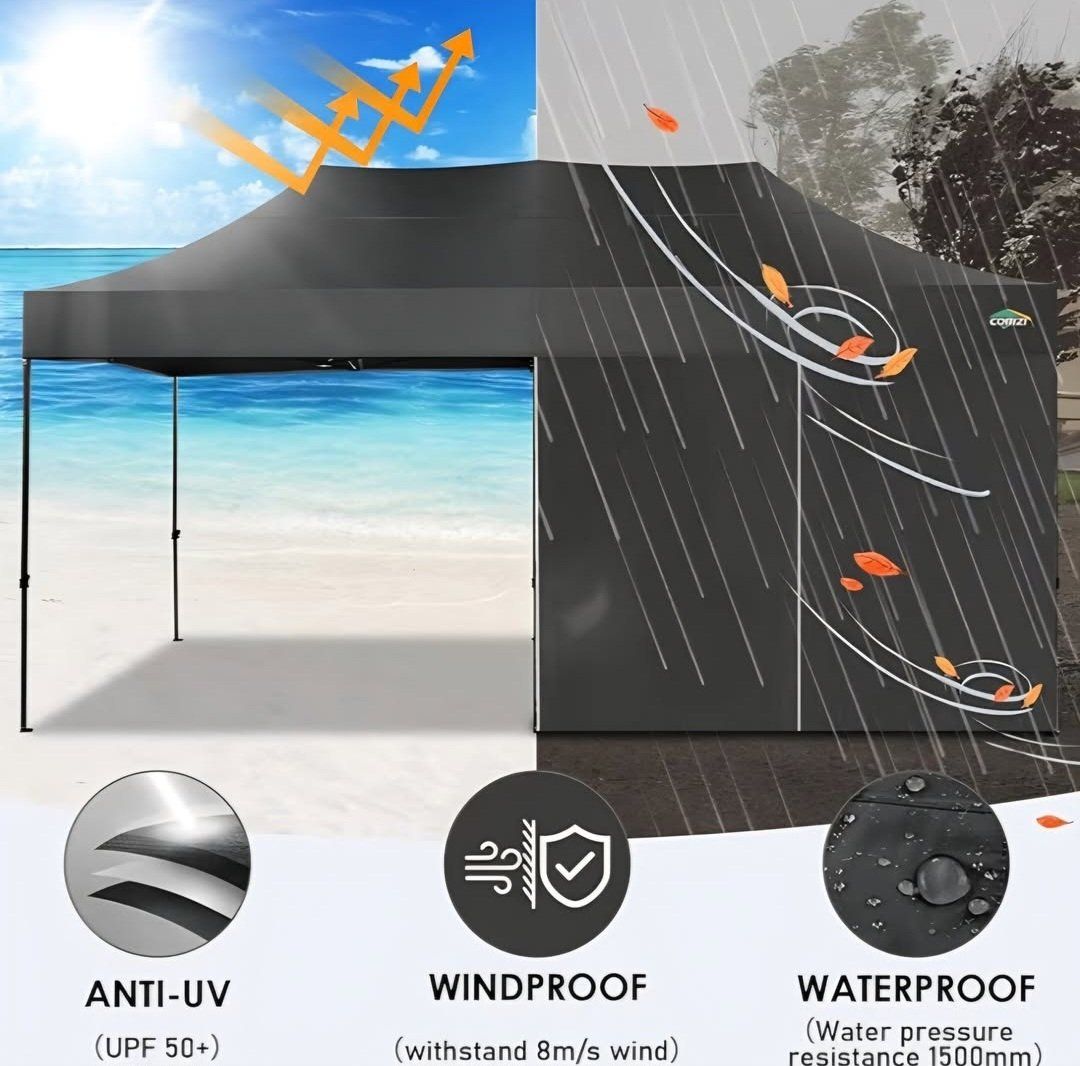 COBIZI 10x20 Heavy Duty Pop up Canopy Tent with 6 sidewalls Easy Up Commercial Outdoor Wedding Party Tents for Parties All Season Wind & Waterproof Gazebo Roller Bag, Black(Frame Thickened)