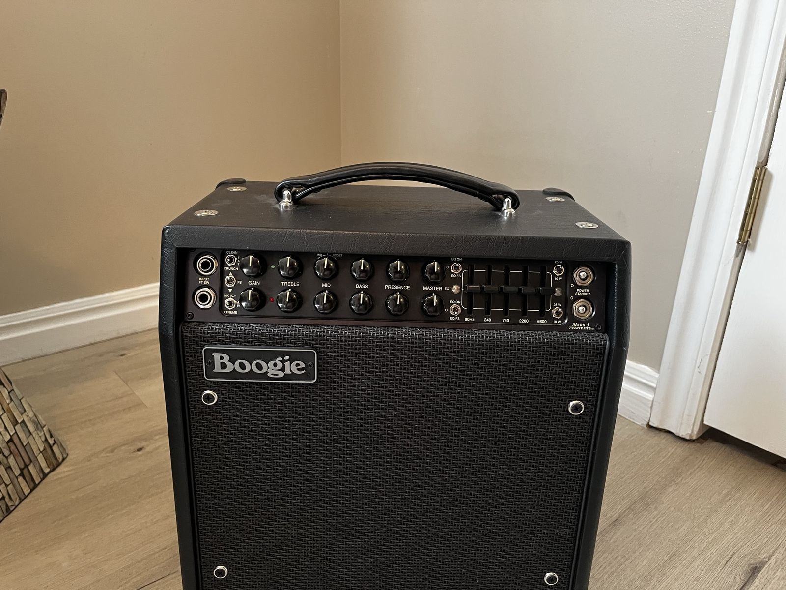Excellent condition Mesa Boogie Mark V 25. Create all the classic mark series tones, including the Mark 2. Has the graphic EQ, which adds a ton of versatility. This is a high-quality amp in a small package.