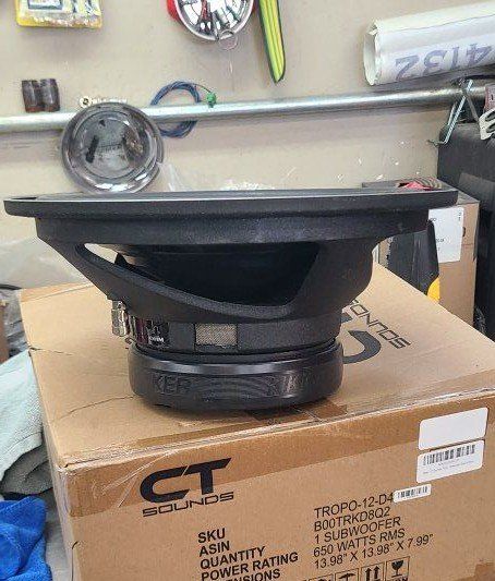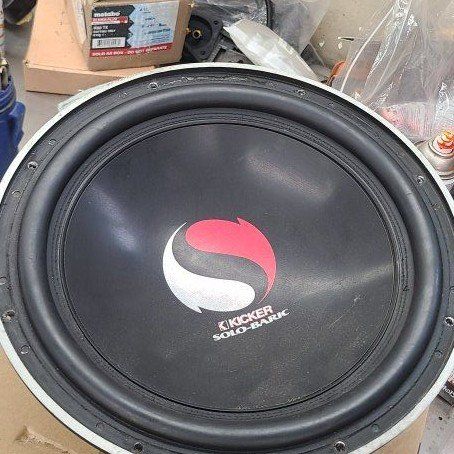 This is an old school solo baric s12d, 4ohm single voice coil. It's missing the fiber trim stuff that goes around the outer edge of the frame but doesn't affect anything sound wise. Ready to go in a box!