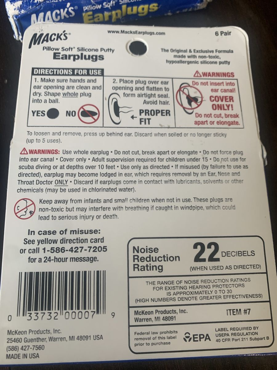 3 packages of earplugs, 18 pair, snore and water proof, new