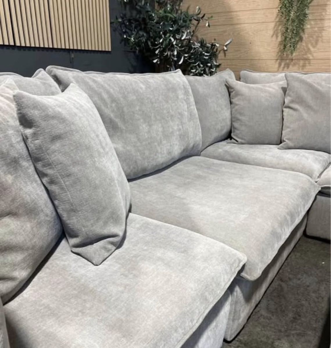 Sereen 6-Piece Fabric Modular Sectional Refined Comfort in Every Detail Experience the blend of comfort, design, and versatility with the Sereen 6-Piece Fabric Modular Sectional from Aiden & Ivy™. Crafted for relaxation and style, this sectional features deep seats and plush, reversible feather-blend back cushions coupled with feather & foam seat cushions to provide customizable comfort. Upholstered in a cozy dark grey. TheSereen is designed for durability and longevity. Its modular design allows for numerous configurations, making it an ideal fit for any room size and layout. The sectional includes a matching ottoman for additional comfort and style. Each piece is fully upholstered, offering the flexibility to stand alone or integrate seamlessly with the entire group.