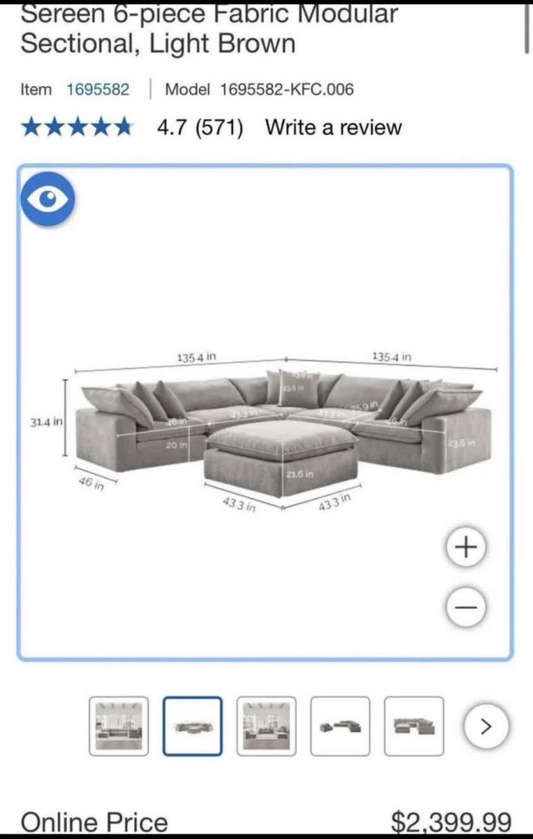 Features: Color is taupe Loose Reversible Feather Blend Cushions Configurable Modular Design Responsible Down Standard (RDS) Sourced Feather-Wrapped Foam Seat Cores Matching Ottoman Includes 6 Matching Pillows