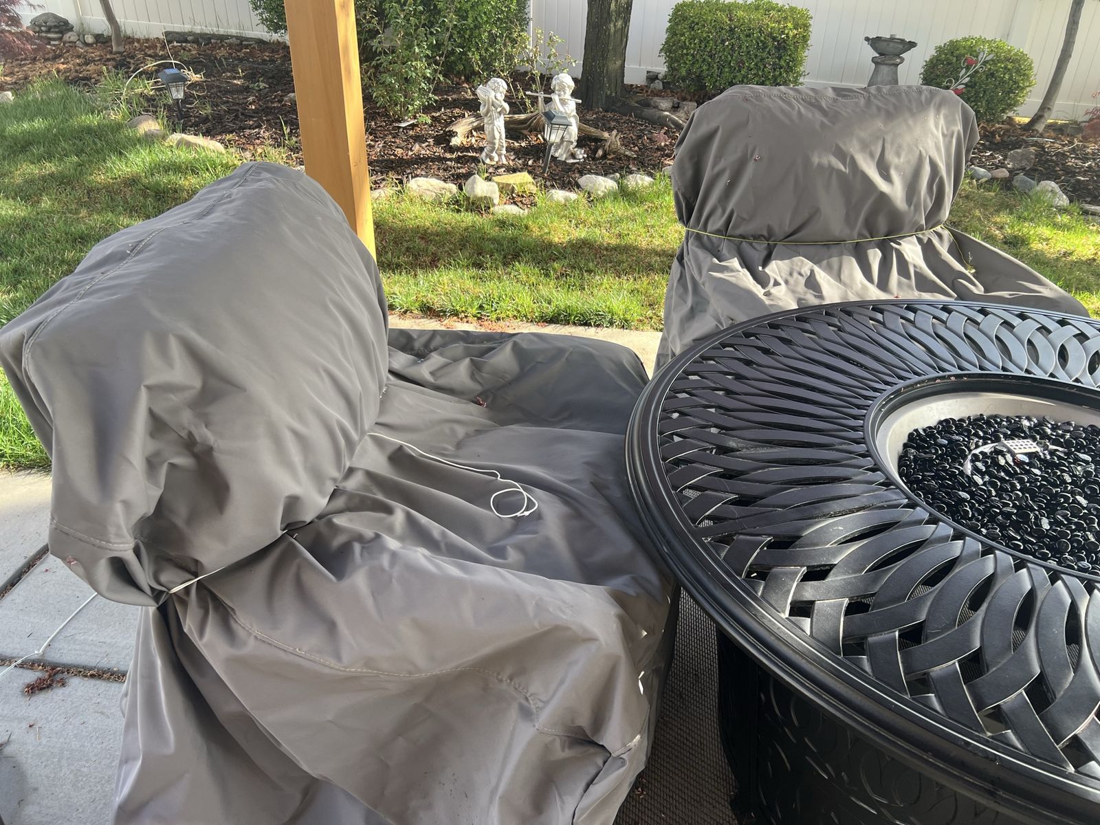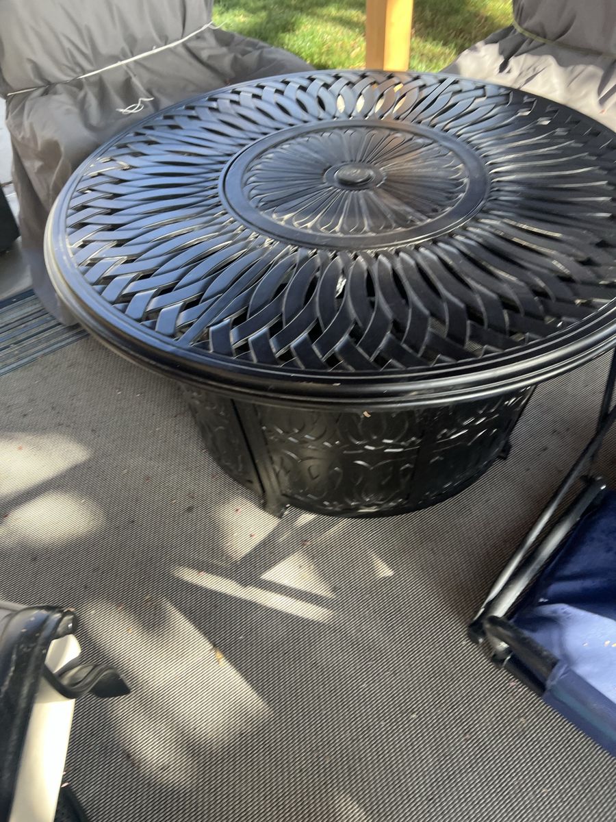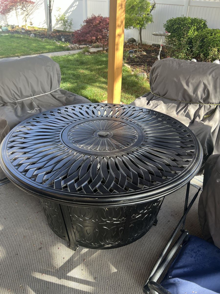 We are moving and must sell our beautiful patio set which includes 4 swivel chairs and a table with a fire section in the middle plus the seat covers and a swing. Paid $2,700.00 in June 2025. Selling for $950.00. Has been housed/protected under a gazebo with seat covers on. Very little use.