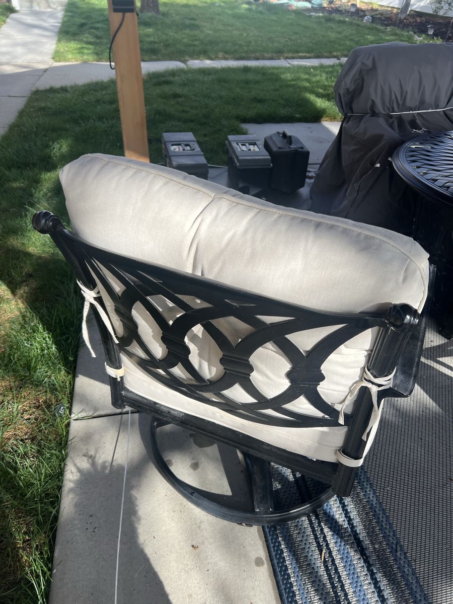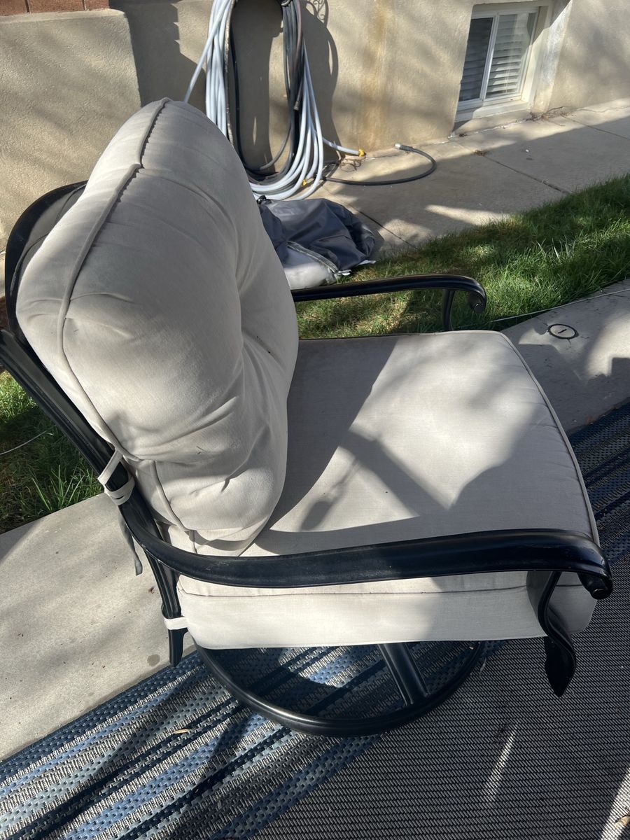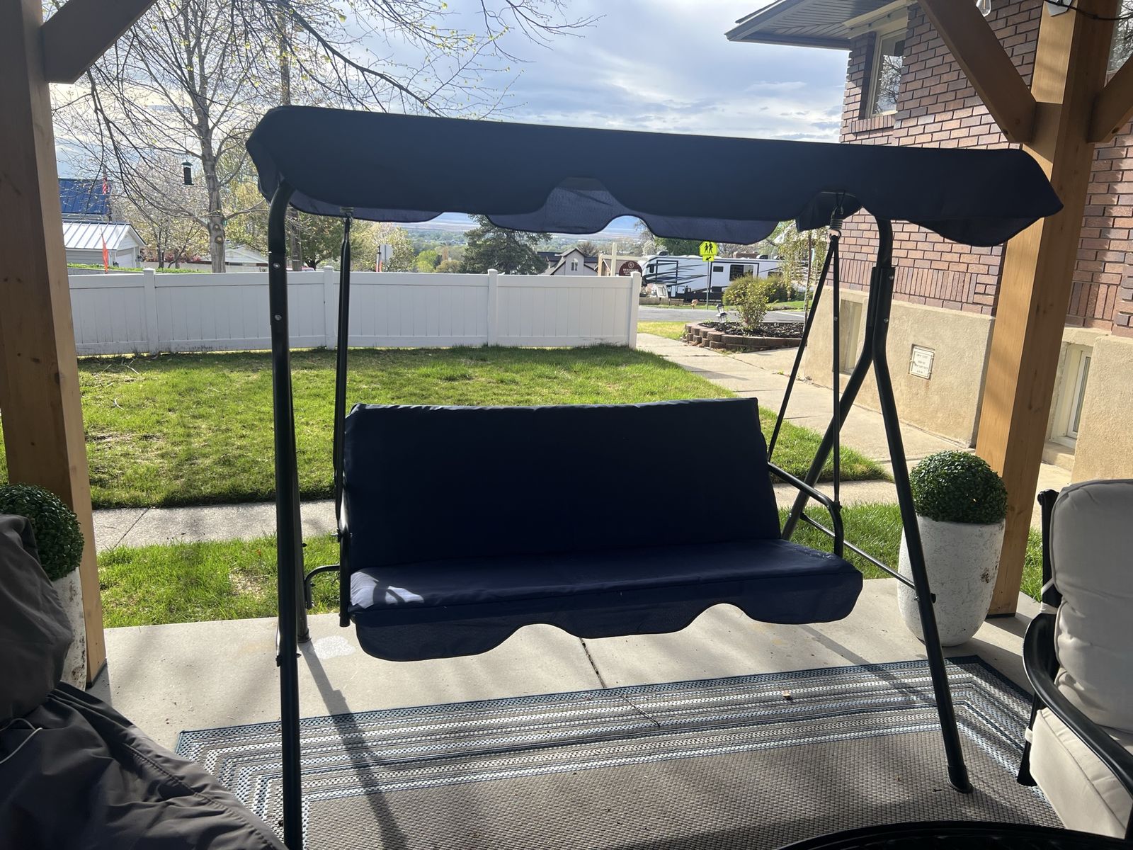 We are moving and must sell our beautiful patio set which includes 4 swivel chairs and a table with a fire section in the middle plus the seat covers and a swing. Paid $2,700.00 in June 2025. Selling for $950.00. Has been housed/protected under a gazebo with seat covers on. Very little use.