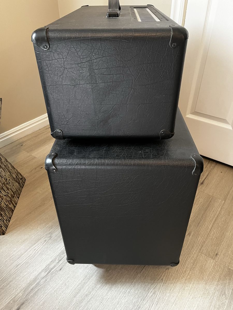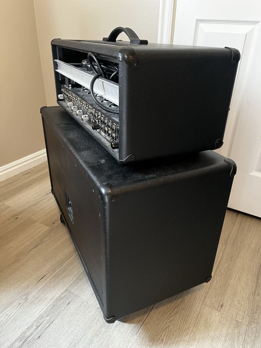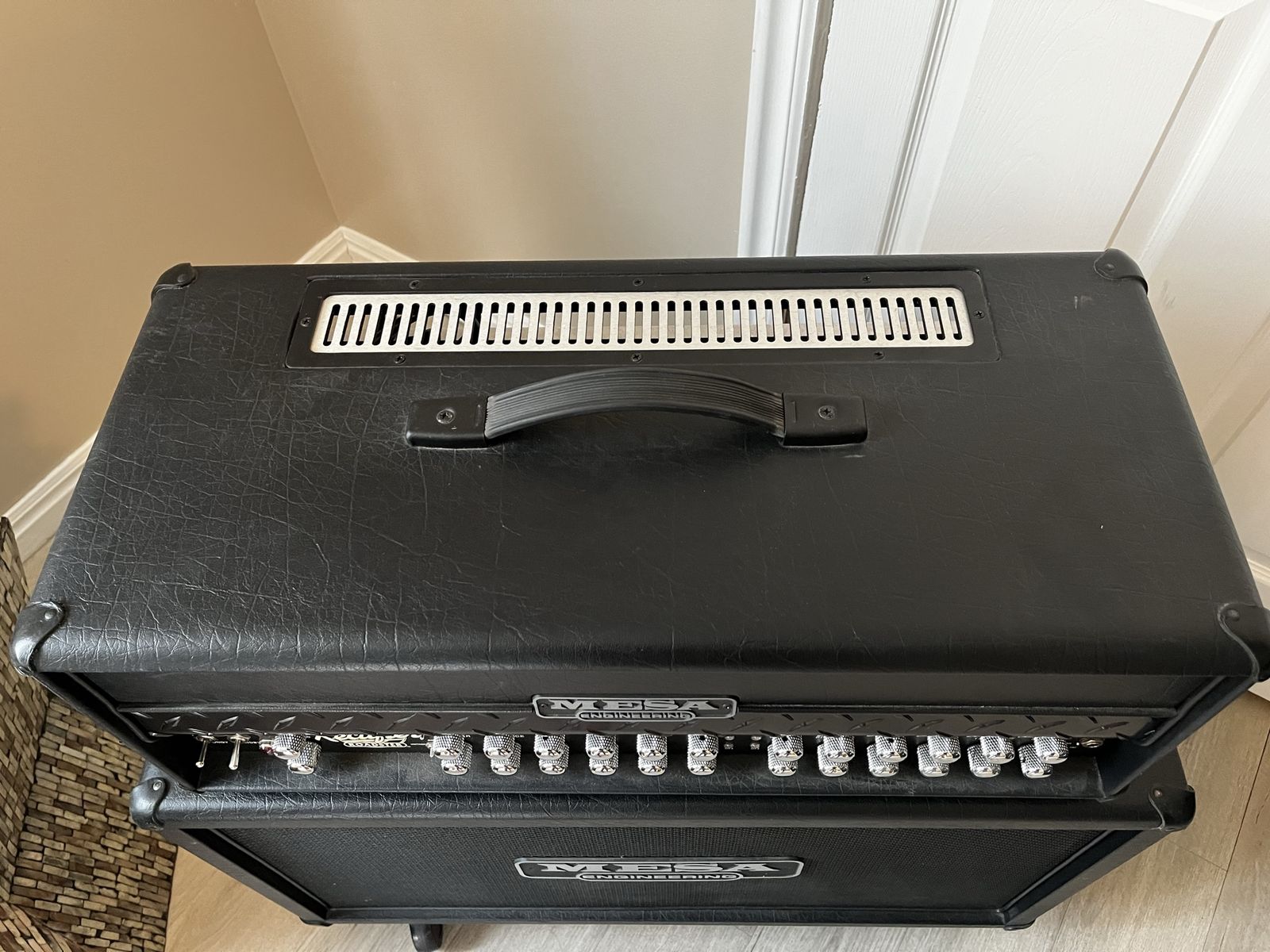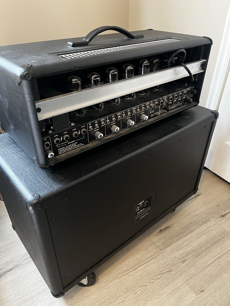 Everything works as designed. Includes original foot pedal in excellent condition. This includes a Mesa rectifier 2 x 12 cabinet. In excellent condition with Cover. The cabinet is loaded with Mesa branded Celestion V 30s