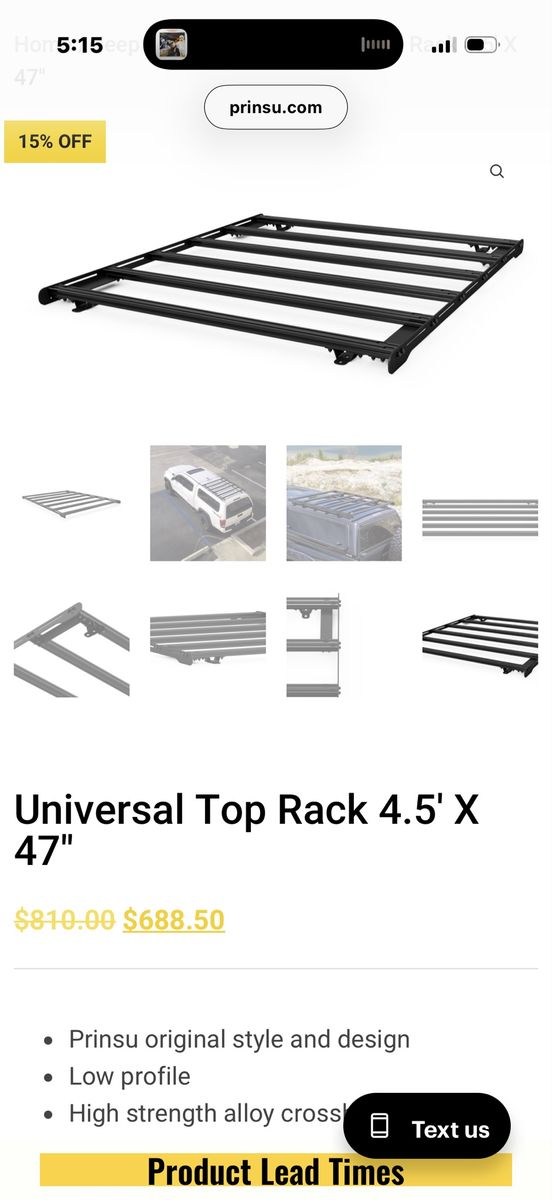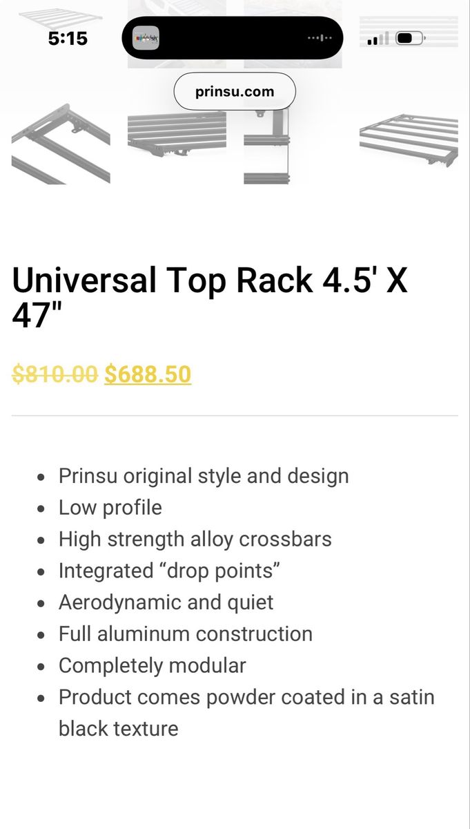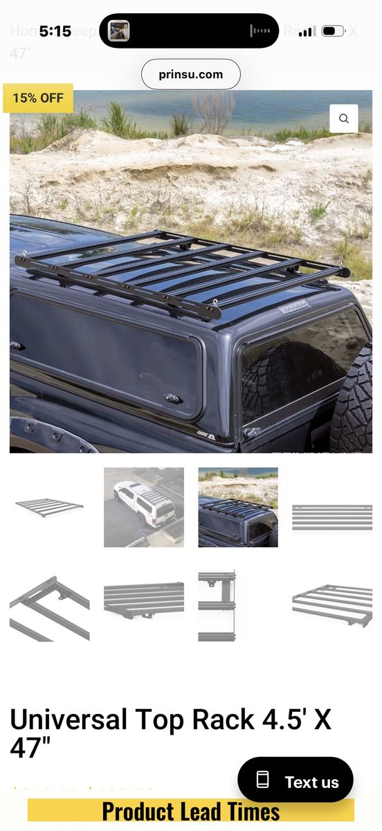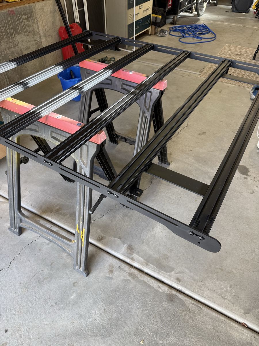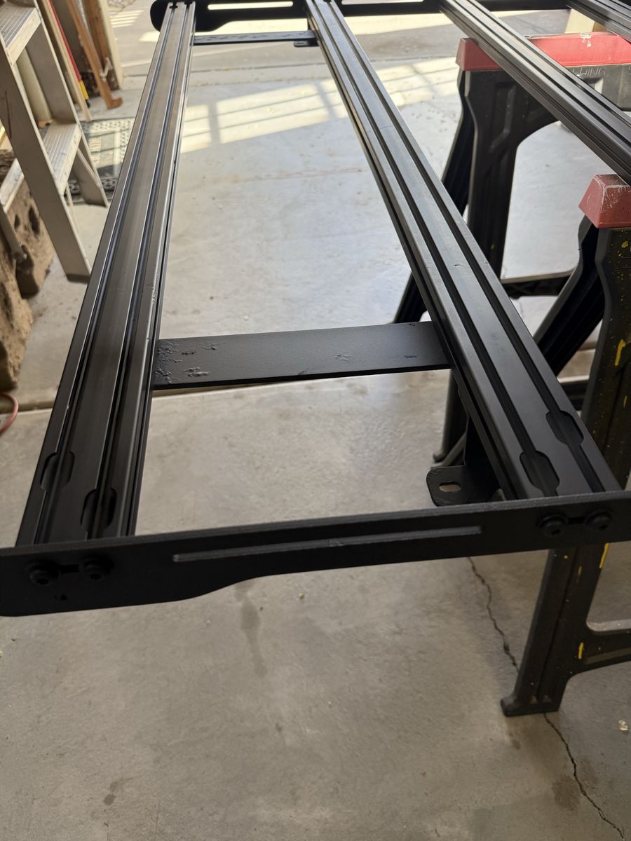 VenmoOff a short bed Tacoma, is their universal cap rack to mount on topper with rails, so could work for other vehicles/applications. Dimensions in photos. Used but in good shape and put together. Fair price as they have them for sale at $688 on their site. Aluminum with steel mount plates. Any questions please ask. Also have uptop quick mount for a tent if interested.