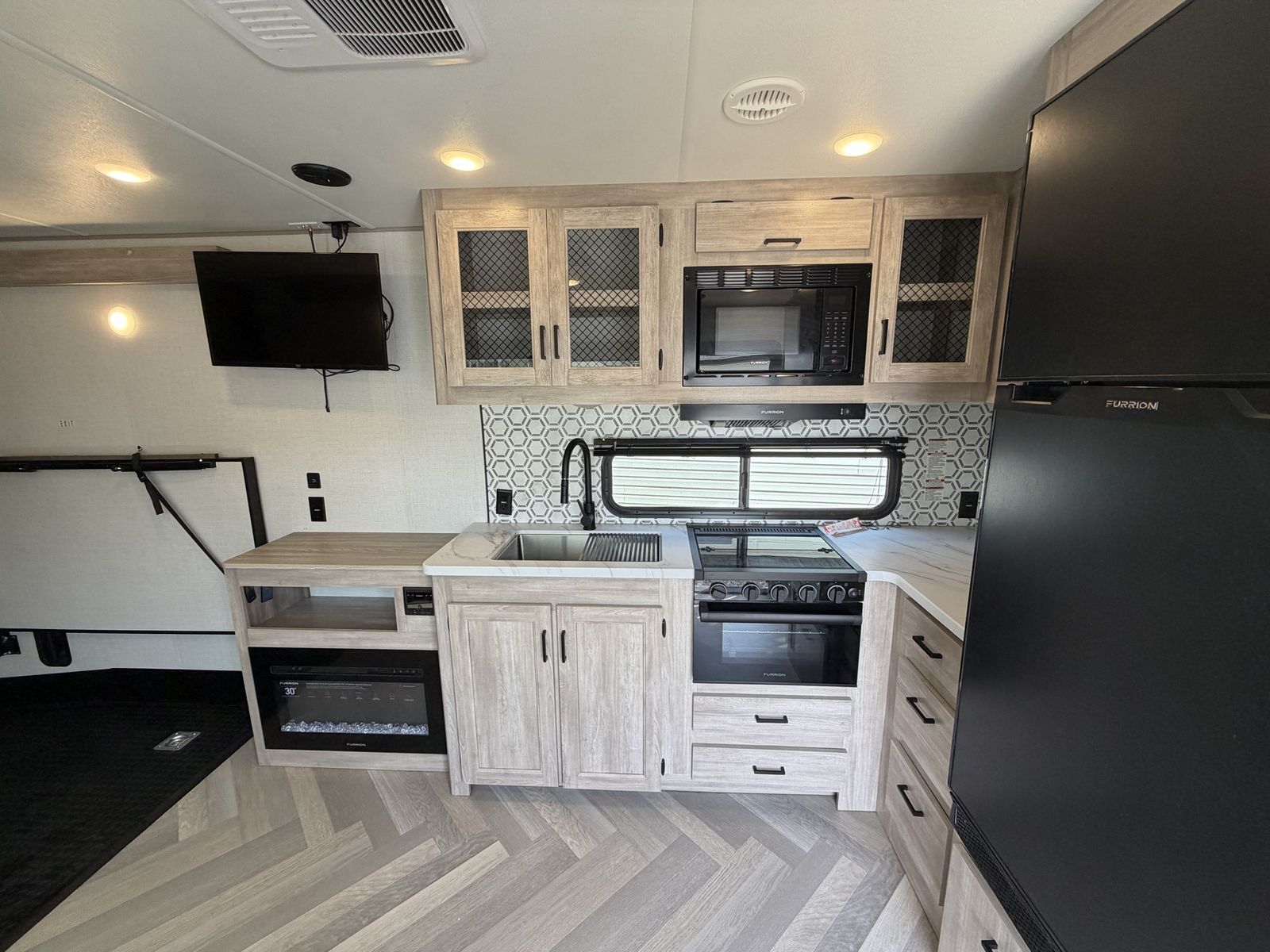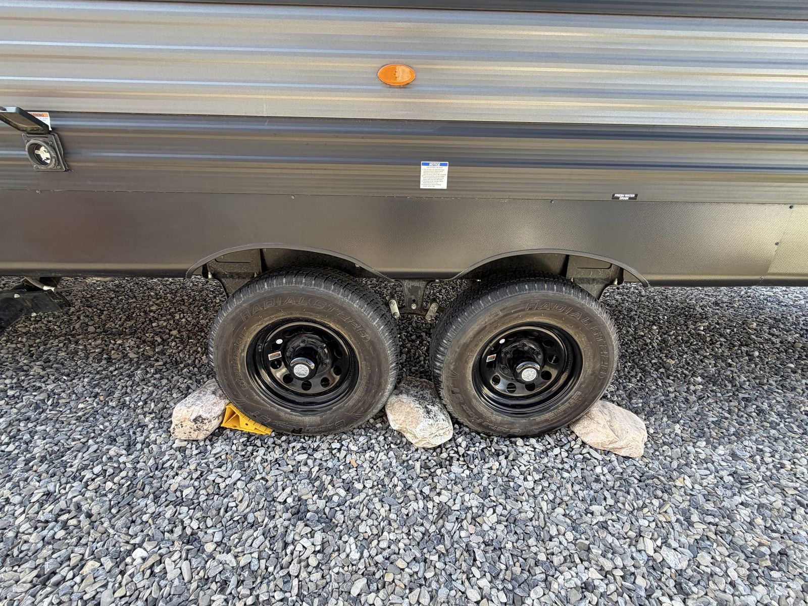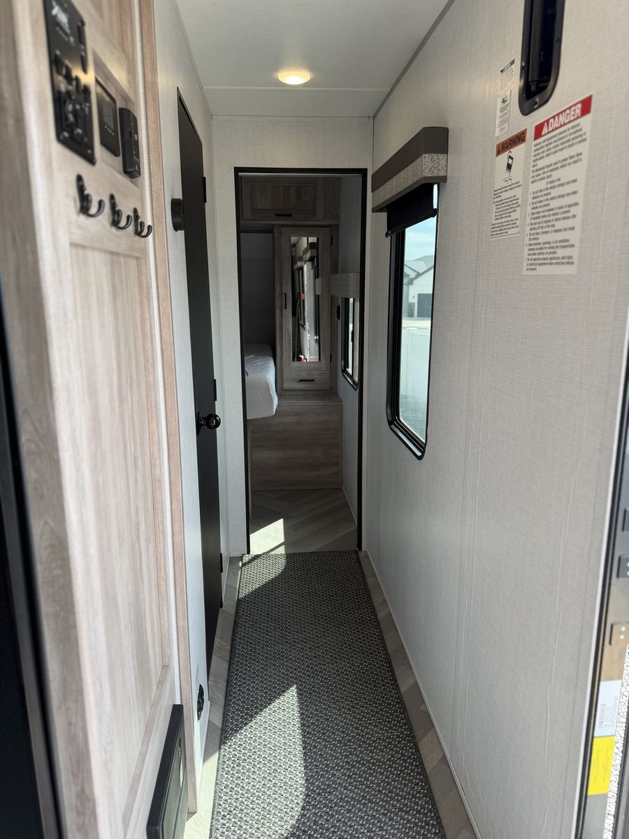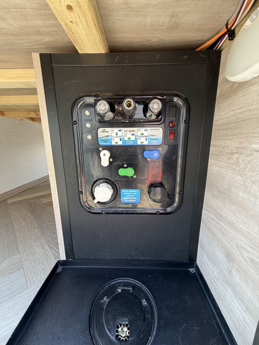 Length: 32' 5" Dry Weight: 7,063 lbs (easy to tow with most half-ton trucks) GVWR: 11,470 lbs Cargo Capacity: 4,407 lbs 14' 2" garage with ramp door — easily fit our full-size Polaris General XP 4-seater Sleeps 6–8 people Walk-around queen bed with brand new 10-inch Green Tea Cooling Gel Memory Foam mattress (never slept on – we upgraded it immediately) Two gaucho sofas that convert into additional sleeping space 10 cu. ft. 12V refrigerator, 3-burner cooktop, convection microwave, and 30" fireplace Valuable Extras Included: