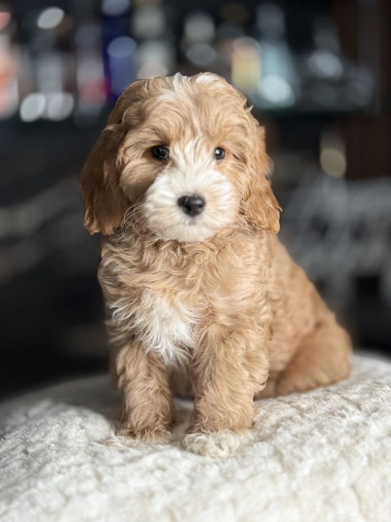 ApplePayThis beautiful mini goldendoodle boy has the perfect wavy hair! No shedding at all! He has gorgeous blocky faces and perfect conformation he is doggy door trained and loves the I be with his people!