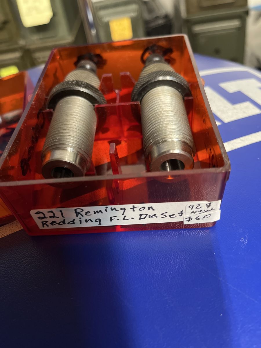 Redding F L die set for 221 Remington Fireball. New at Midway they are $92. Here they are $60-10%=$54. I will ship for postage costs. Please see my other ads. Thanks, Joe.