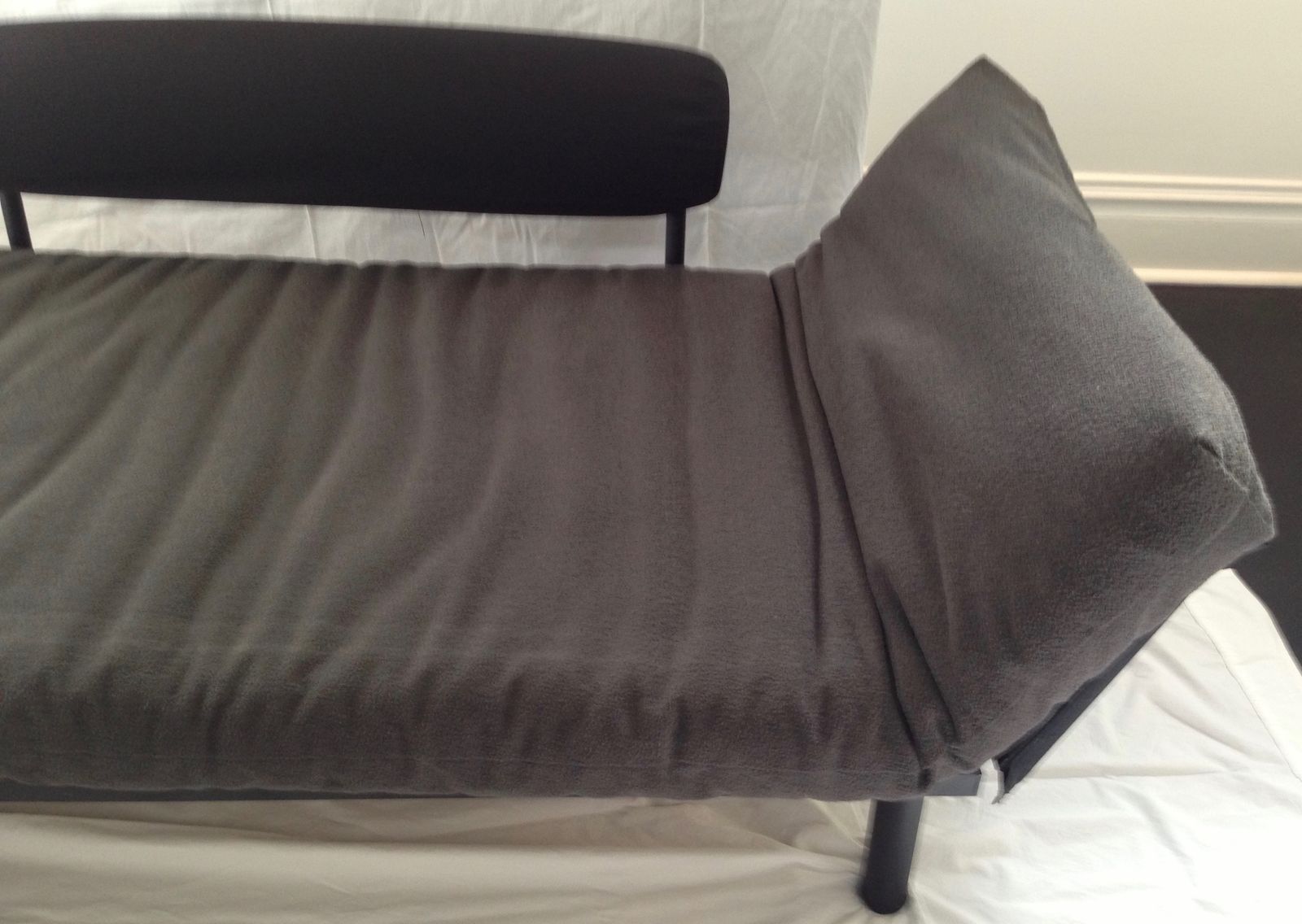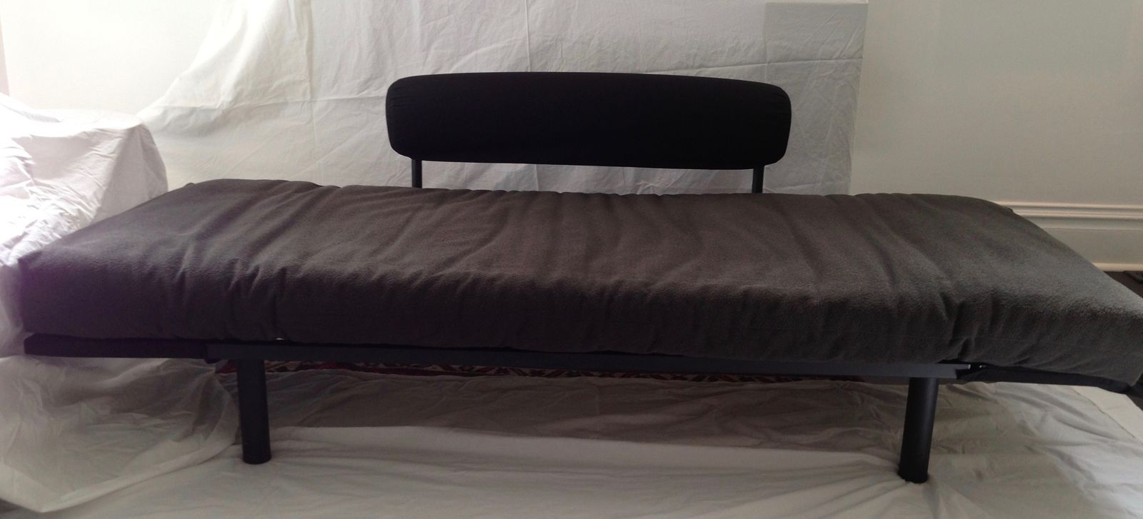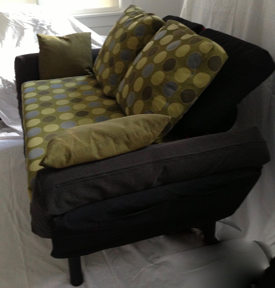 Great Futon Sofa . A sofa by day and a great little twin size bed by night. Custom Fabrica on futon and cushions.