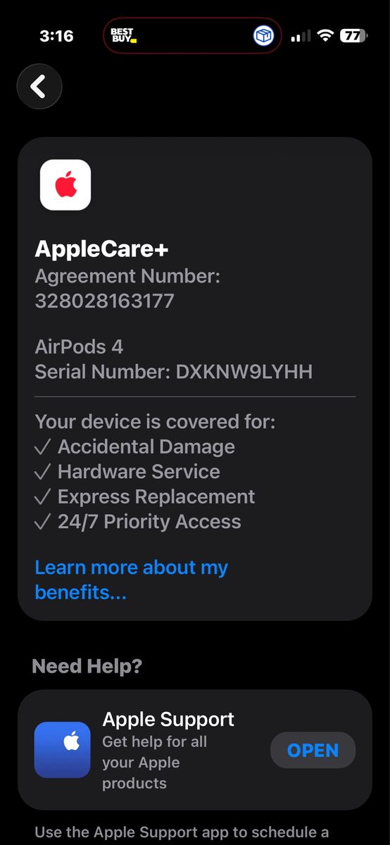Selling my new set of AirPods 4 w/ANC. Apple Care + till the end of the year. I wouldn’t even selling these, they fit me perfect, sound quality iis better than the pro 3’s in my opinion. They have almost Everett feature of the pro 3’s. Only selling cause I have another set.