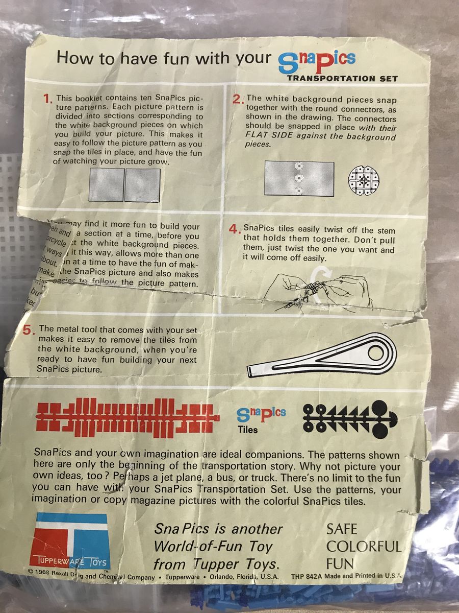 Tupperware Toys SnaPics Transportation Set #203 Vintage 1968 Rexall Drug and Chemical Company USA.