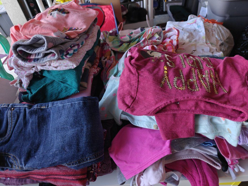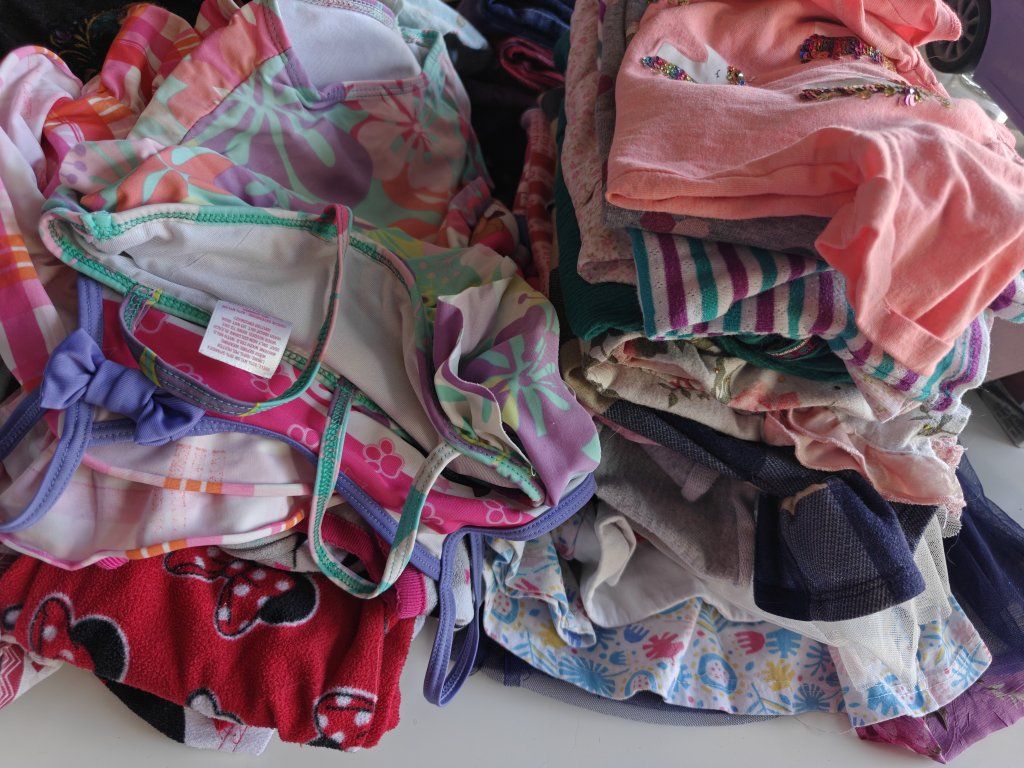 Clothes for girls sizes 3-4, shoes sizes 9 and 10, T-shirts, pajamas,Jacket, jeans, leggings, dresses, 2 swimsuits, shoes, boots size 9, shoes in perfect condition size 10.Cash only.