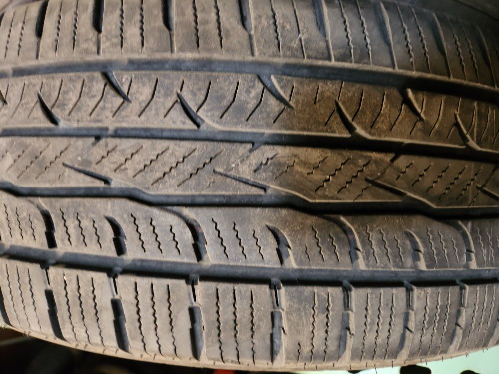 I have this used pair of 2 tires they have 50% of the thread left on them any question feel free to call or text i can also mount and balance for free if you need me to Accept cash venmo or snap finance