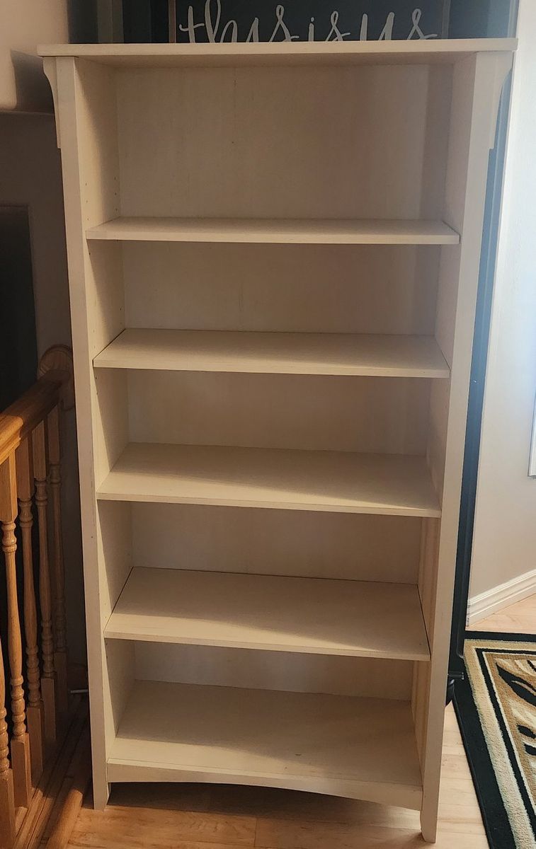 VenmoCreme bookshelf/hutch. Dimensions are 63 X 32 X 12 inches. Four adjustable wood shelves. sturdy like new. Retails at $200. Pet and smoke free home. No holds or deliveries.