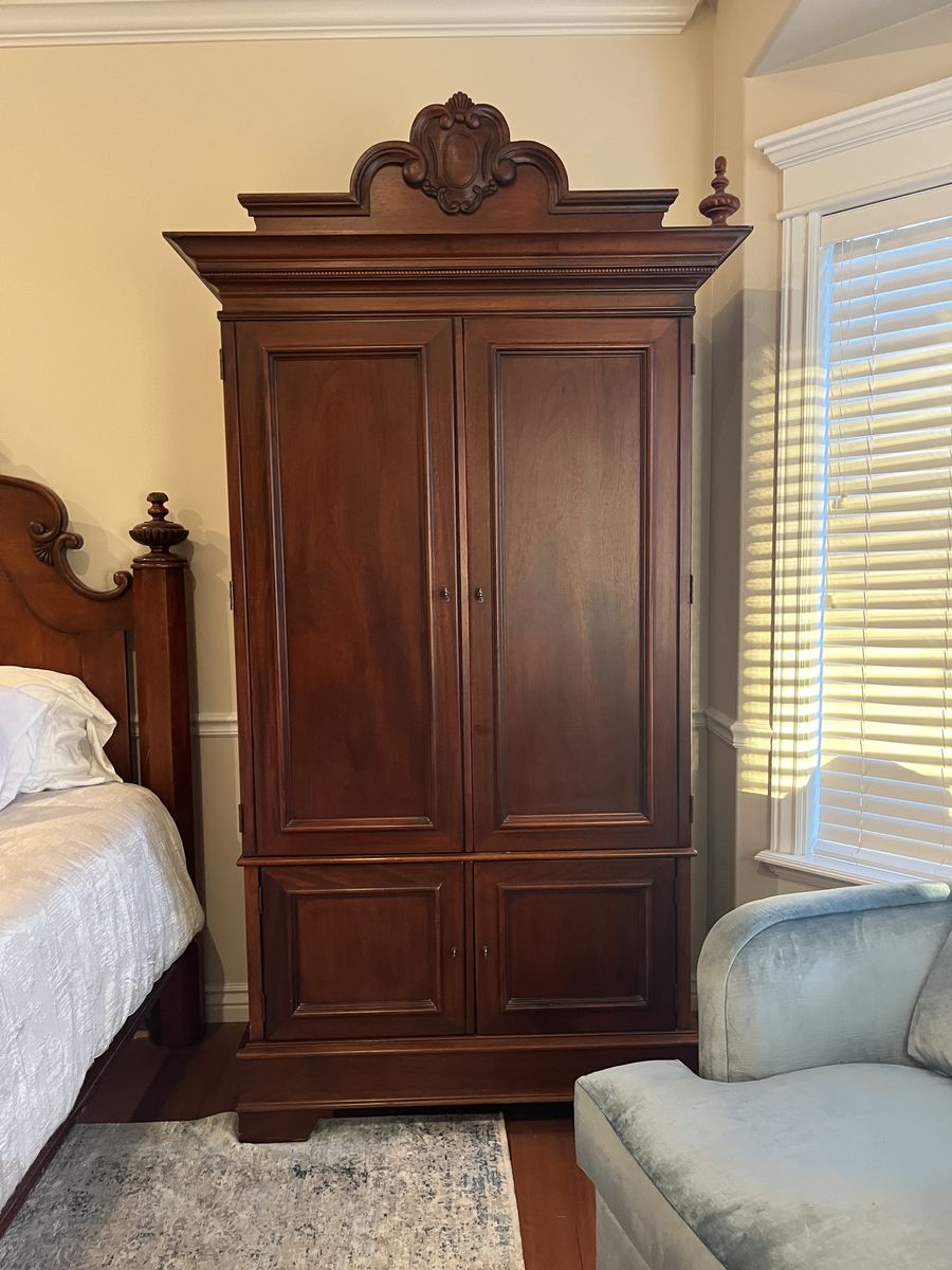 King sized mahogany bed and armoire set. Made in USA by Lexington furniture. Solid and very sturdy. $700 for the set. Call Don at 801-381-0952