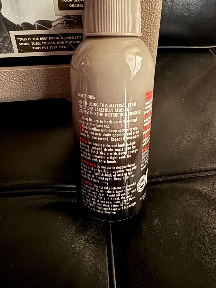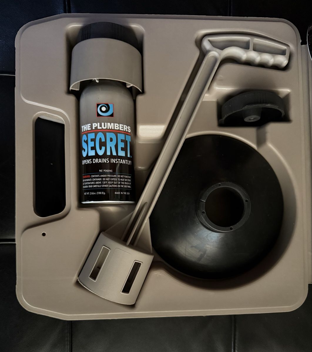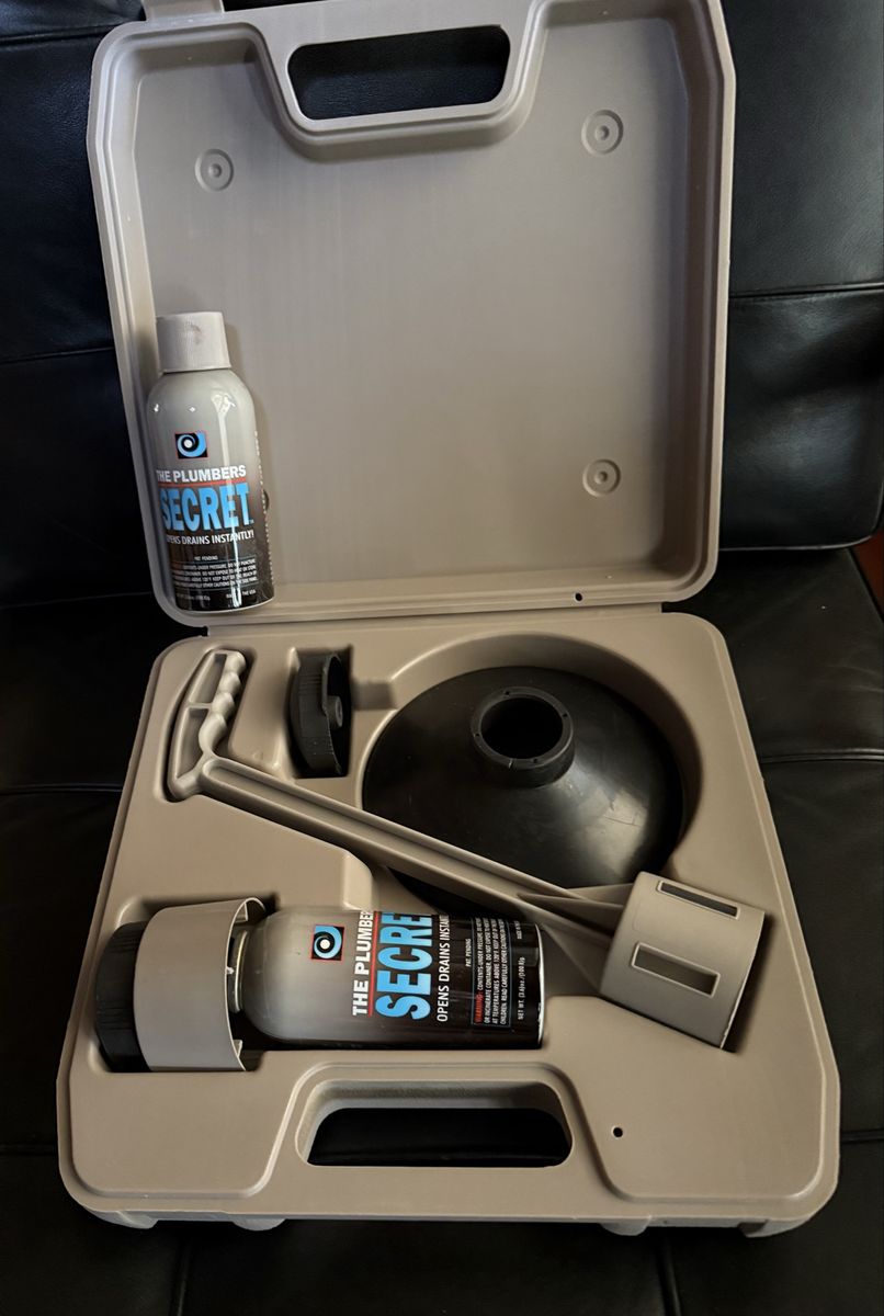 CashAppBob Villa's complete plumbing kit to clear clogged drains. Everything's there including an extra can of the "secret" solution. One can feels a little less than full. No idea how it works, found it in a closet!