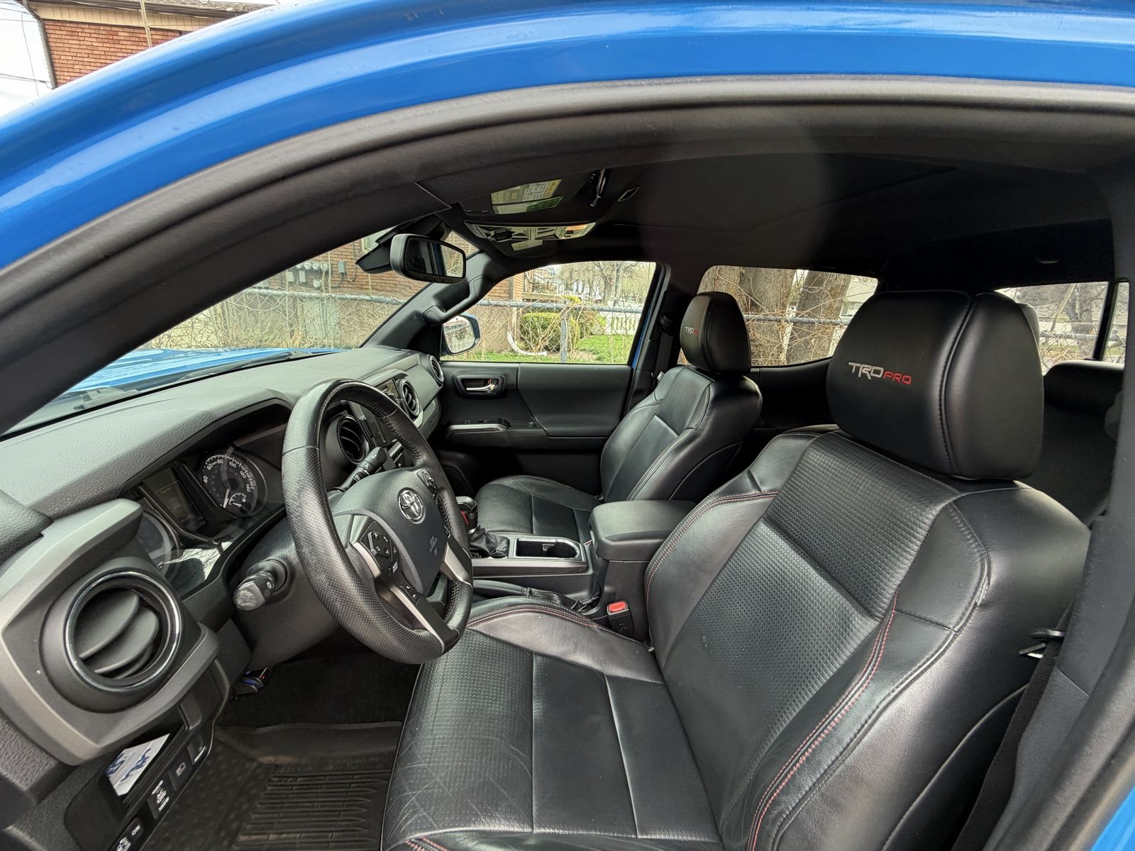 Additional features: Leather seats with red trd stitching Blind spot monitor Back up camera Parking sensors Touch screen display + Bluetooth Auto brights Auto Unlock Towing package Toyota floor mats Bose speakers Hands free speaking + voice Bed cover Pro exhaust Pro oil pan