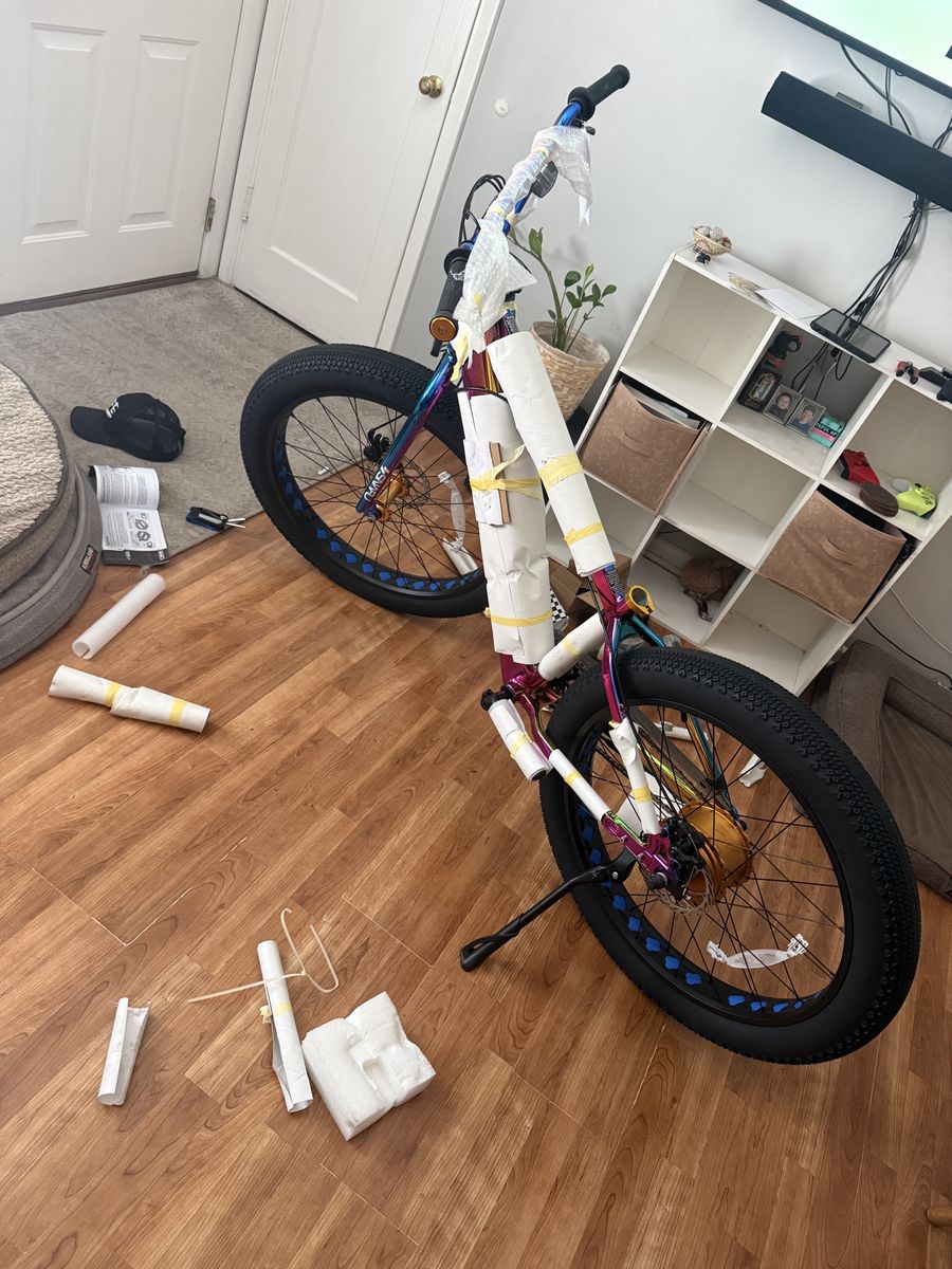 Brand new. I got a good deal on this, ordered it, built it (see pics) and decided it isn’t quite what I wanted. It is fun though, has fat tires, has a great pedal-assist (there is no “throttle-only-mode”, this is pedal assist only). Because it is “BMX” style, there is only the one gear. This bike is flashy! Looks cool! Works perfectly. It retails for $1200 (link below). I am asking $800 or best offer. Text is best 8012302759