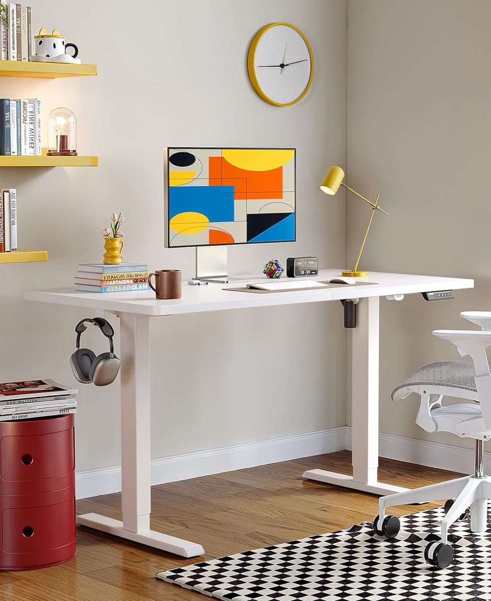 VenmoNEW ErGear Electric Standing Desk, 55 x 28 inch Height Adjustable Sit Stand Up Desk, Computer Home Office Desk with 4 Memory Height Buttons, Two Pieces Desktop, White, EGESD112W