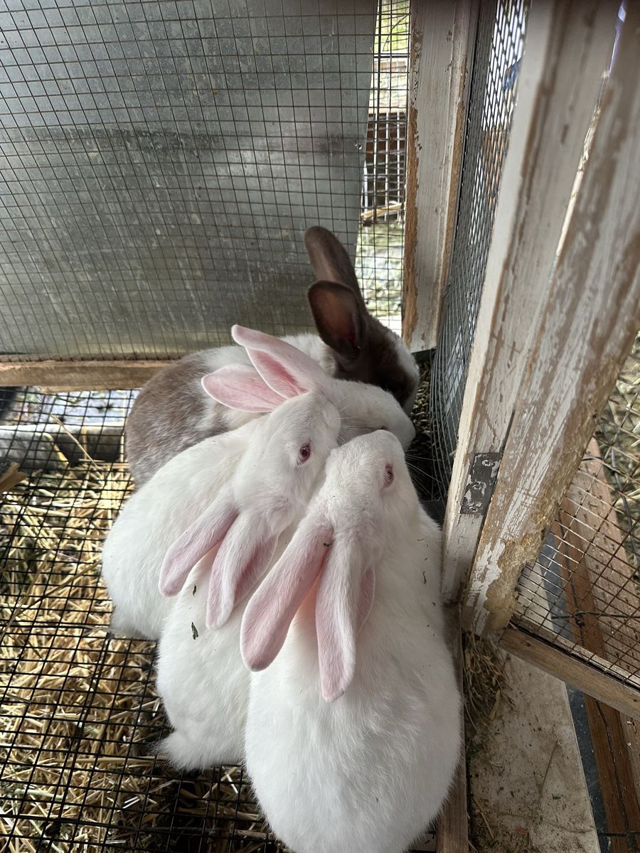 Color ones are mostly New Zealand & some Rex mixed in (moms the mix). The pure white (REW) are the straight NZs.