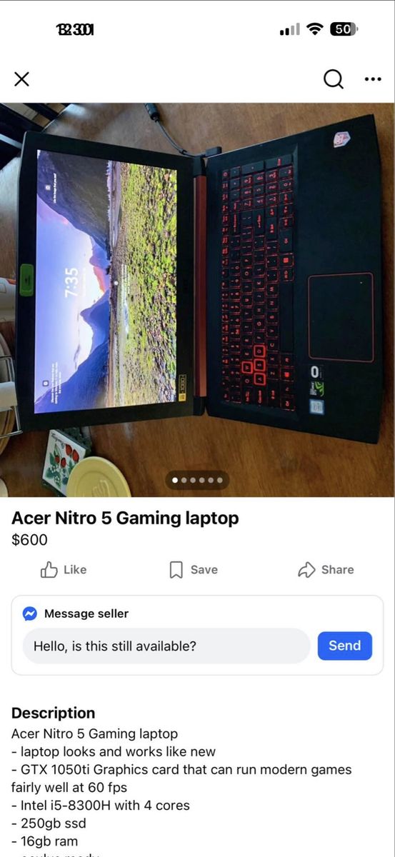 ZelleI7-7700HQ 16gb ram dual channel Nvidia Gtx 1050ti 300gn ssd Comps at the end