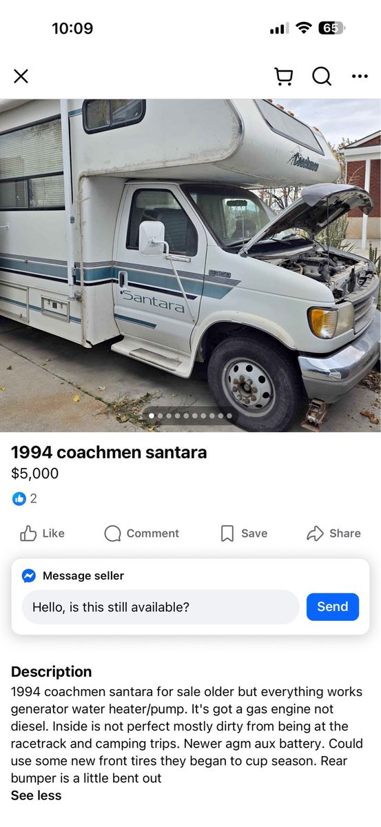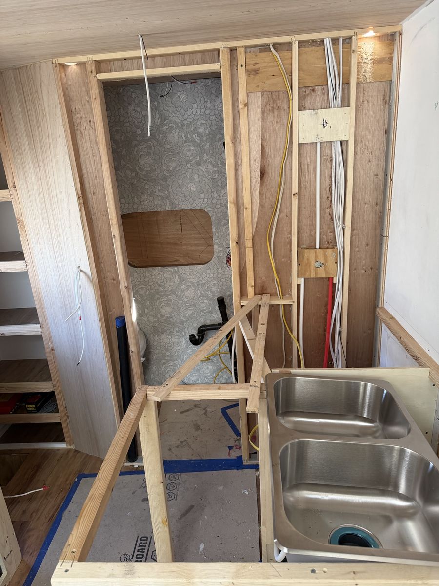 This was being built into a custom camper/tiny home and is already well underway. Perfect for someone looking to finish it their own way without starting from scratch. It comes with everything to finish the build! From the appliances like fridge stove heater shower toilet sink etc. To the exterior Recpro the panels storage doors lights etc. I couldn’t add comps to the end since it only lets 10 pictures but prices I’ve seen for similar conditions or worse and non running anywhere from $4000-$7000