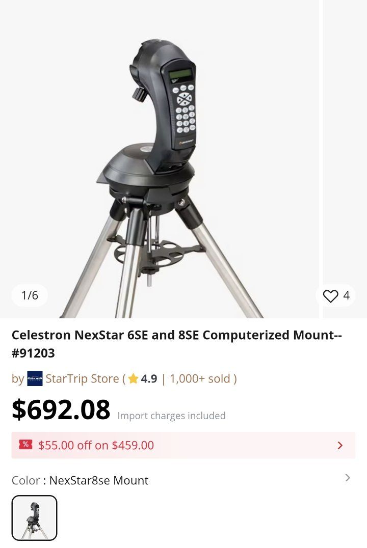VenmoBrand new in box, telescope only. NO MOTORIZED MOUNT INCULUDED brand new its $1700 with mount. taking $1000 off since I dont have mount. but you can buy a mount online for less than $700