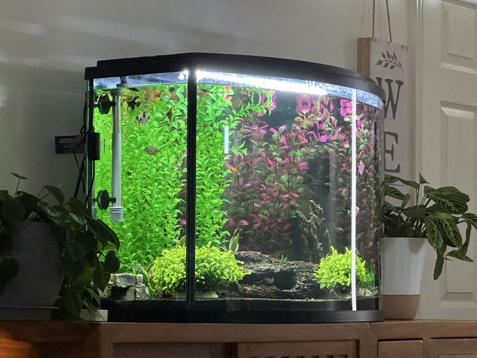 38 gallon aquarium with over $200 worth of fish and decor. Bought recently but now we are moving.