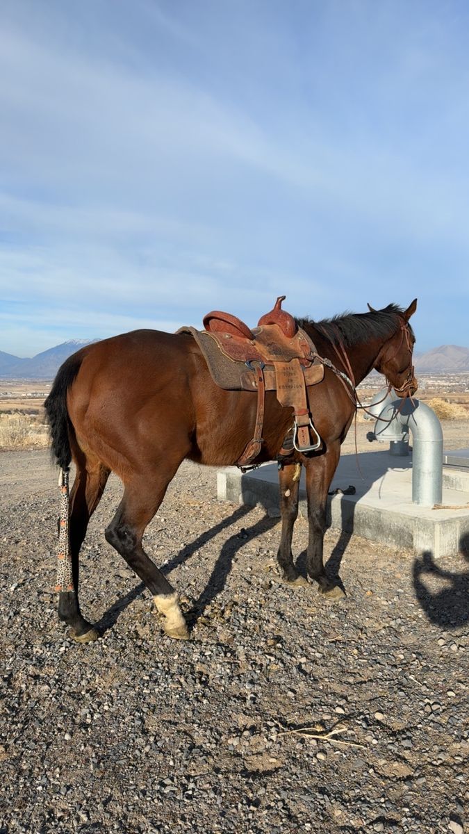 CashAppthis is sheriff. sheriff is a registered 9 year old gelding he’s 16-17 hands tall and has a great personality. he’s a very good boy and is still green but knows the basics. and is starting on barrels. he loads, backs out nice, stands for the farrier and for baths. 5️,5️0️0️ OBO