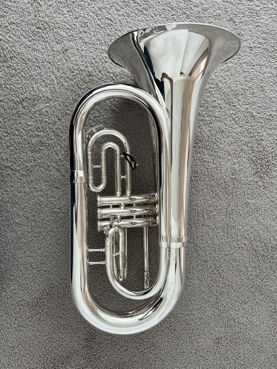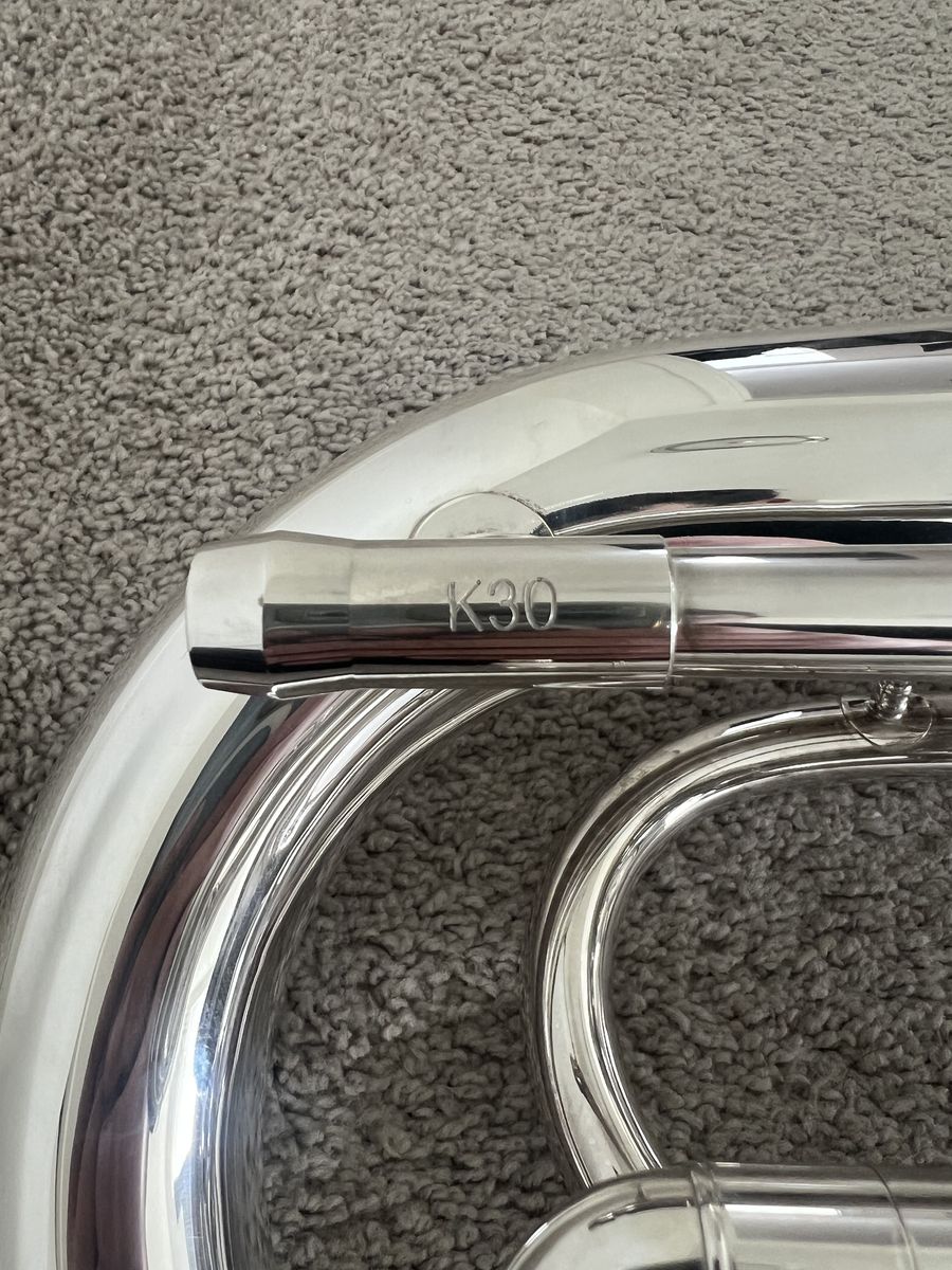 PayPalAlmost mint condition silver plated King K30 marching euphonium. No dents, minor cosmetic blemishes that do not impact playability.