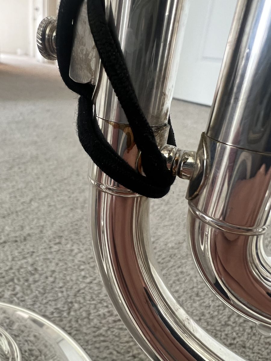 Bought originally as a demo horn, then it was lightly used for drum corps auditions. Never used outside, essentially in the same condition as when I bought it.
