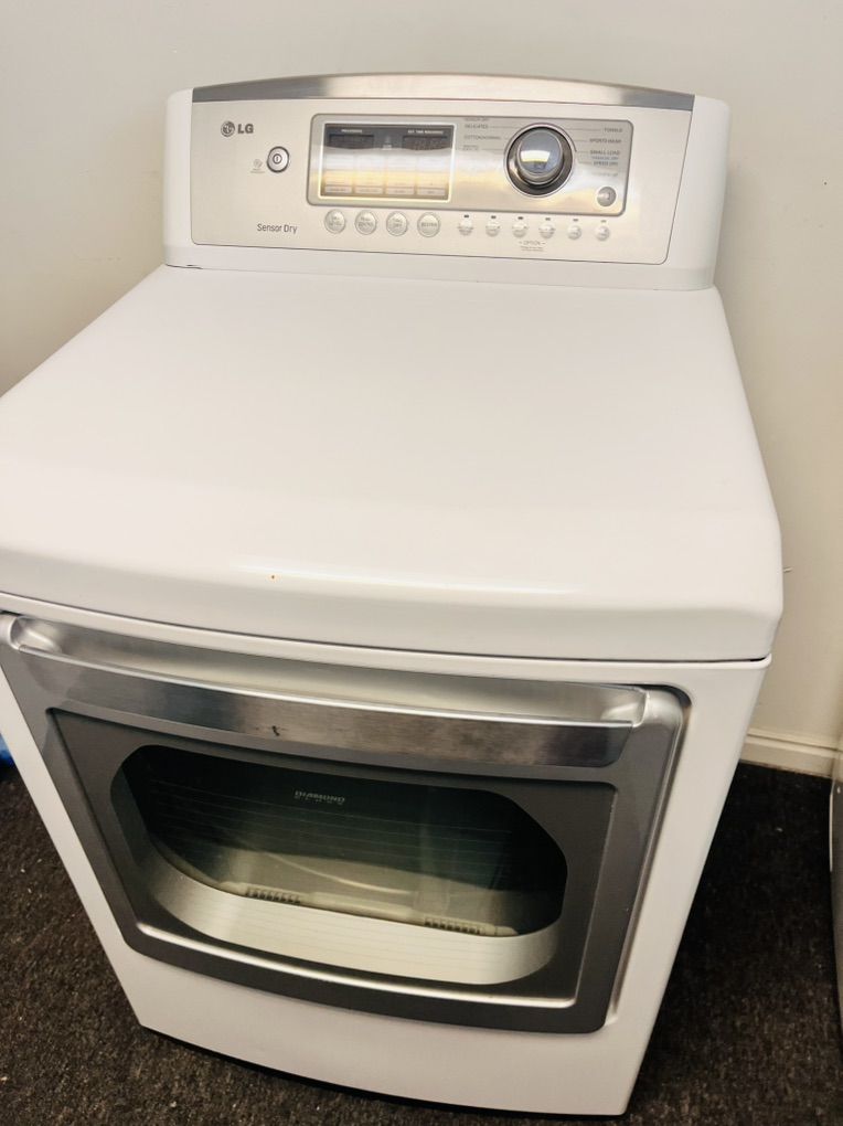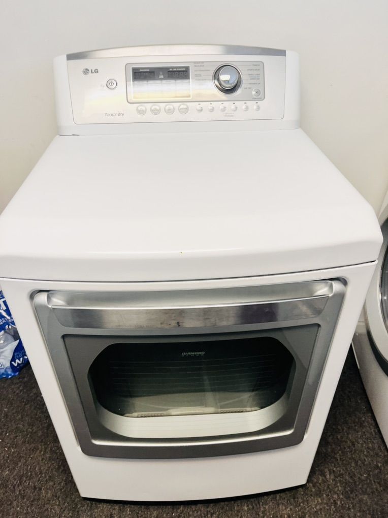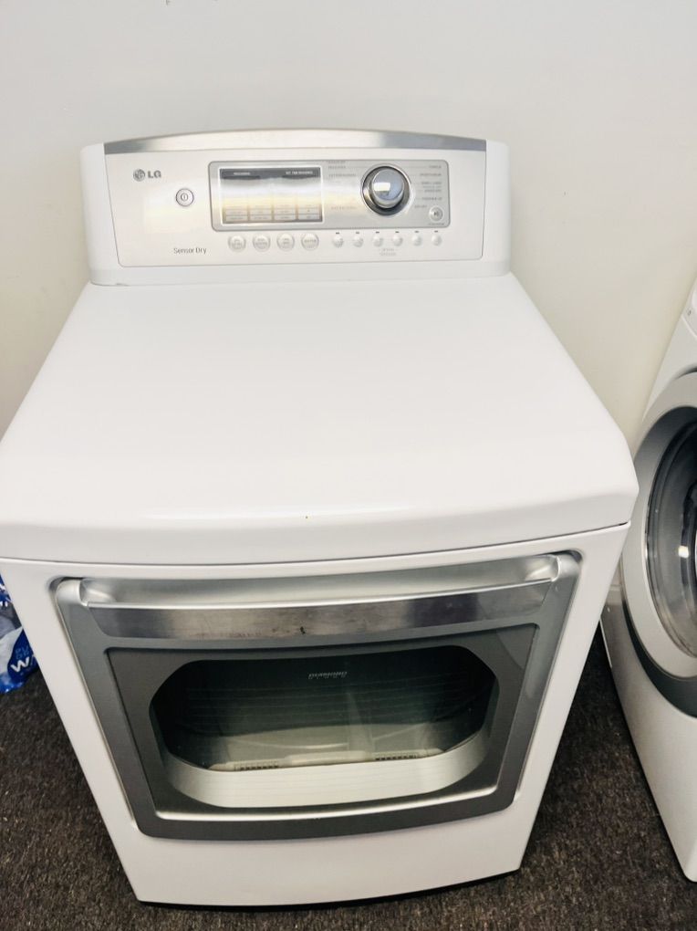 Very nice Lg super capacity electric dryer in excellent condition and very clean inside and out. It’s 7.4 cu ft with stainless steel drum, automatic moisture sensor cycles which adds more time if the load is still wet or reduces time if it’s dry . Comes with a 45 day warranty. Only $200 I can deliver and install for a little extra. Call 8015403075