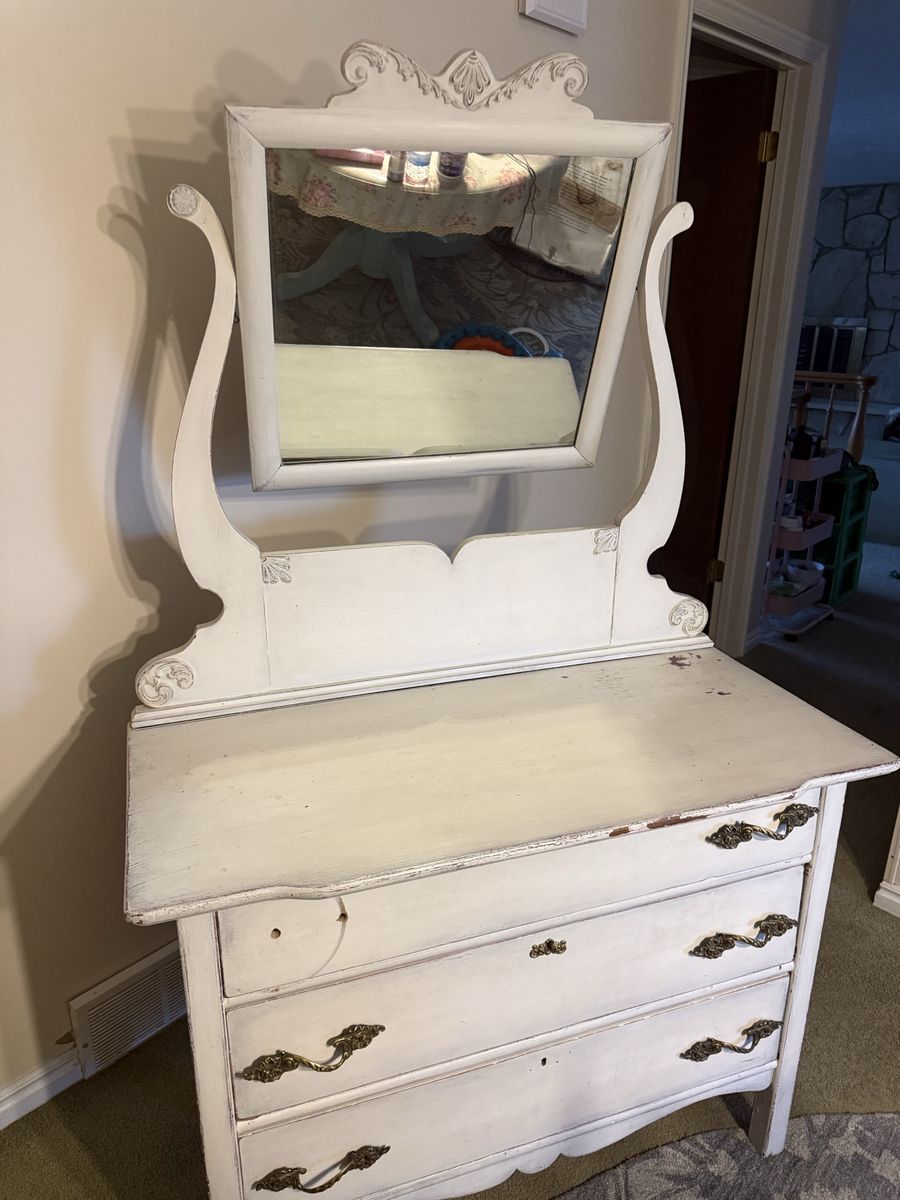 Free twin bed frame it’s all inside the headboard dresser with mirror Table Canning jars pick up tonight