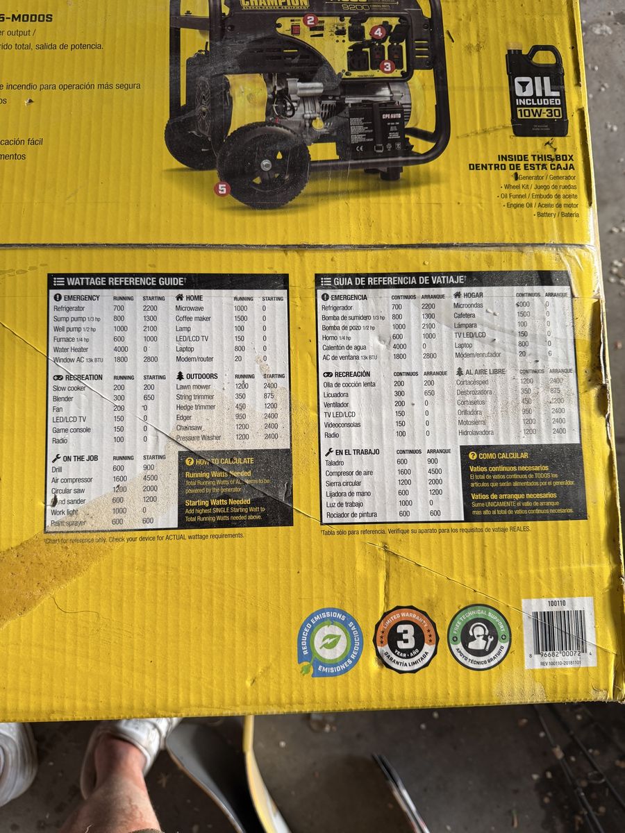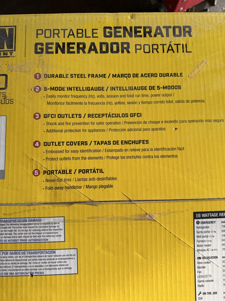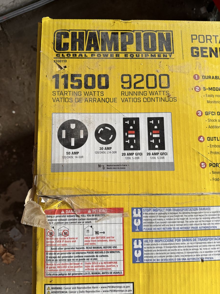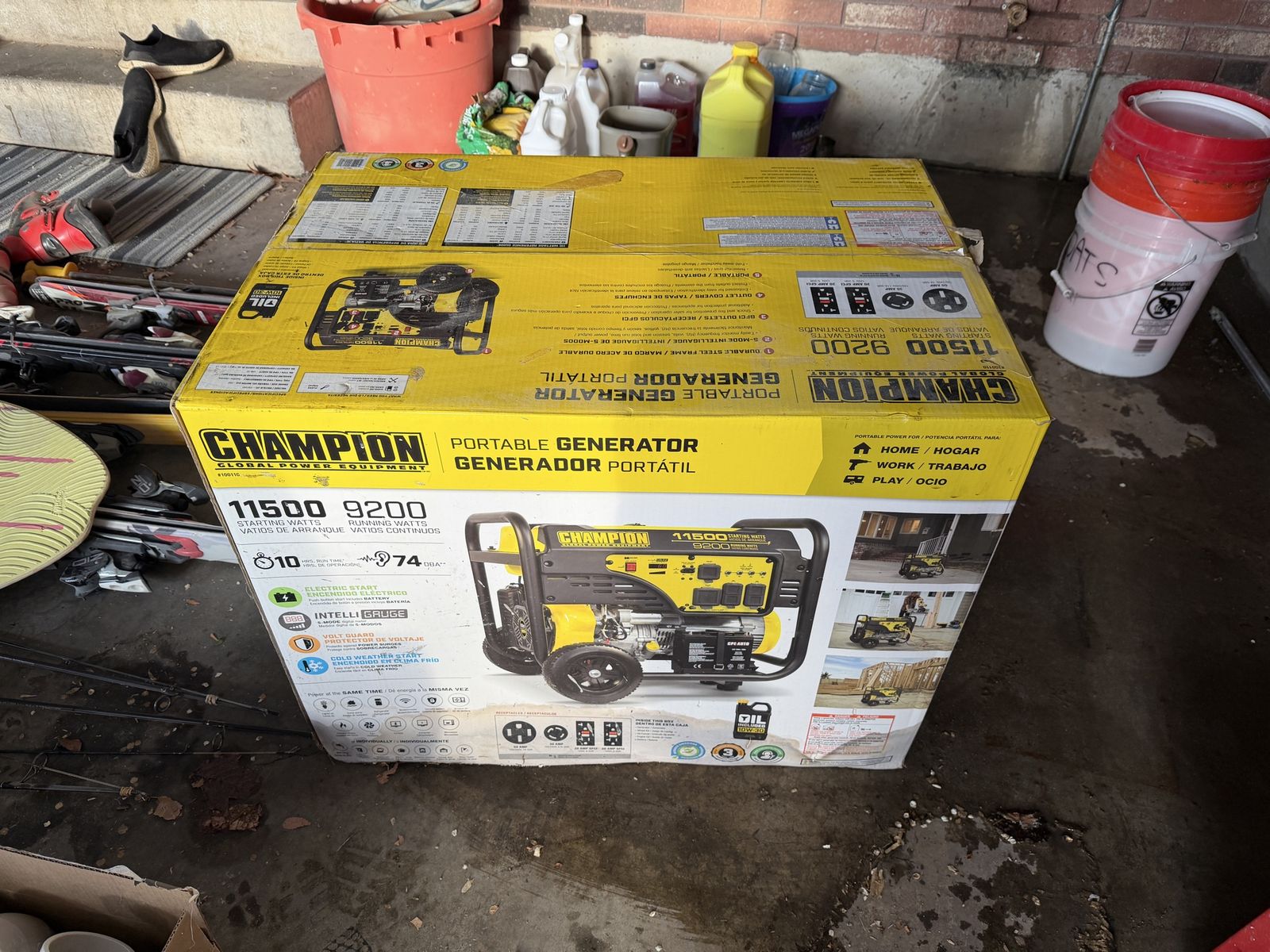 VenmoBrand new Champion portable generator—still in original box, never used. That said, box is not in off the shelf condition. Purchased a few years ago but never ended up needing it.\