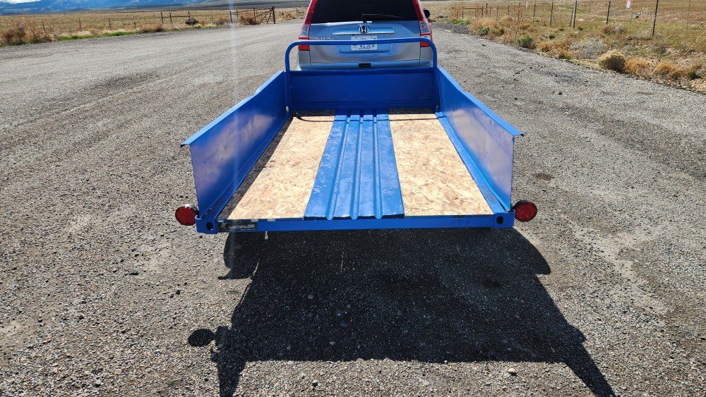 This little trailer was bought NEW from my grandpa back in 2005. He used to haul his old Honda 4 wheeler. He kept it always in good shape and never overloaded it. It has helped many family members and friends to move into their new homes and also transport furniture or taking trash to the dump. It has gone on many camping trips and hauled my Dads Snowmoble. We are ready to pass it along to someone else since we upgraded to a enclosed trailer. Wheel bearings were just replaced last summer. We replaced the wood deck and also new LED lights and wiring . 2 BRAND NEW TIRES Comes with spare tire and Original Title if you'd like to get it registered. 2" ball hitch. 435-580-2207