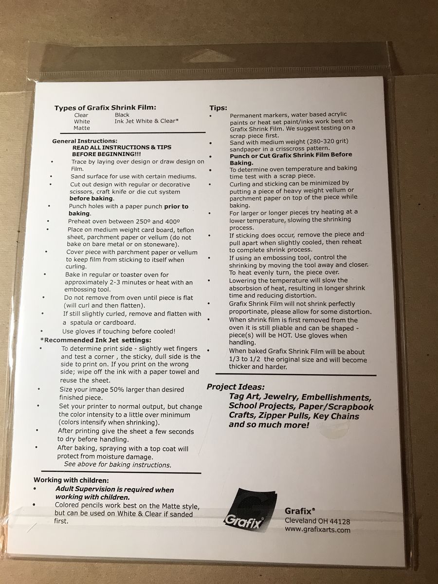 Grafix Shrink Film 9 Sheets. 1 new package of 6 sheets and 1 opened package of 3. The 3 sheets in the opened package are new.