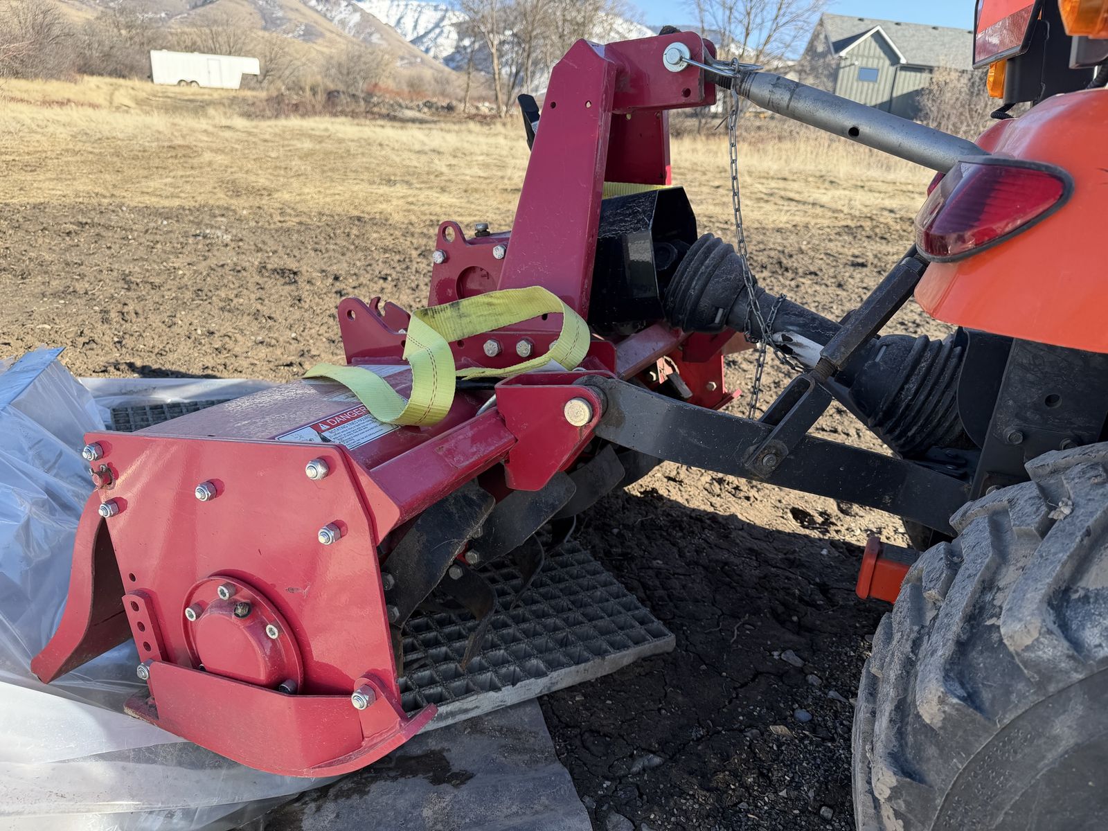 Kubota, with hauler, 48 inch tiller and post hole digger. I have used it to do everything.