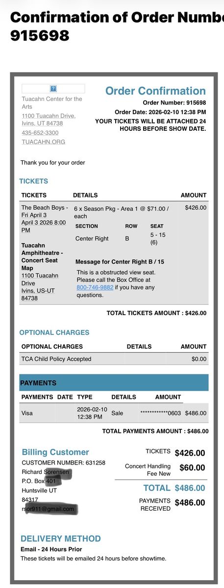 PayPal2nd Row tickets to The Beach Boys concert at Tuachan April 3, 2026