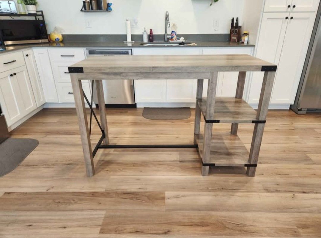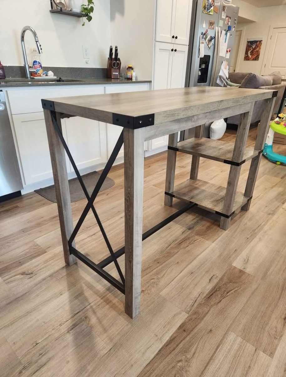 VenmoWalker Edison Modern Rustic Wood & Metal X Kitchen Island in Grey Wash. Usually Run between $200 and $300. In great Condition, a little wear on the very bottom shelf (shown in the last photo). Dimensions: 36” H x 55” L x 22” W Asking $80.