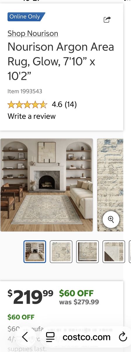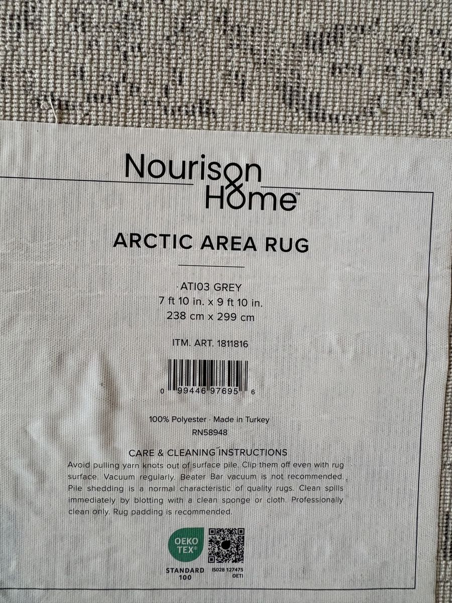 ZelleArea rug. Great condition. No stains or odors. No pets. Bought at costco, current price 220. Grey and cream colored.