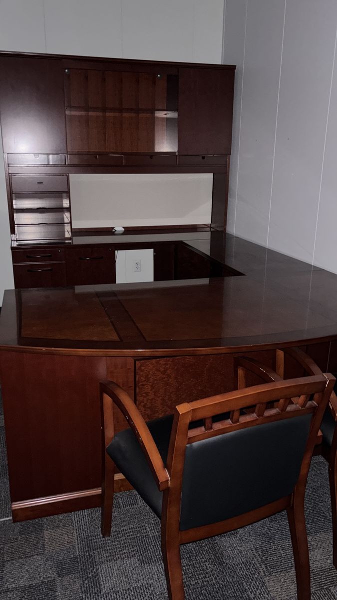 CashApp6pc Traditional Modern U Shaped Executive Office Desk Set in the color cherry bourbon. The desk set is really great condition and can come with 3 matching chairs. Price for the desk can range between $6,000-$7,000 but asking price is $700 or best offer. Pickup is needed, send any message for questions :)