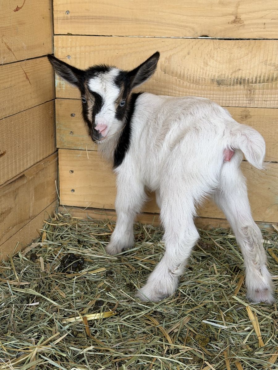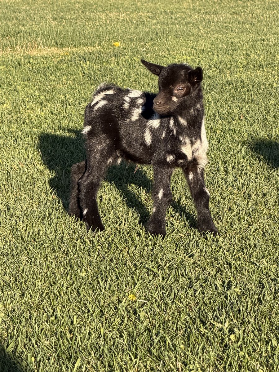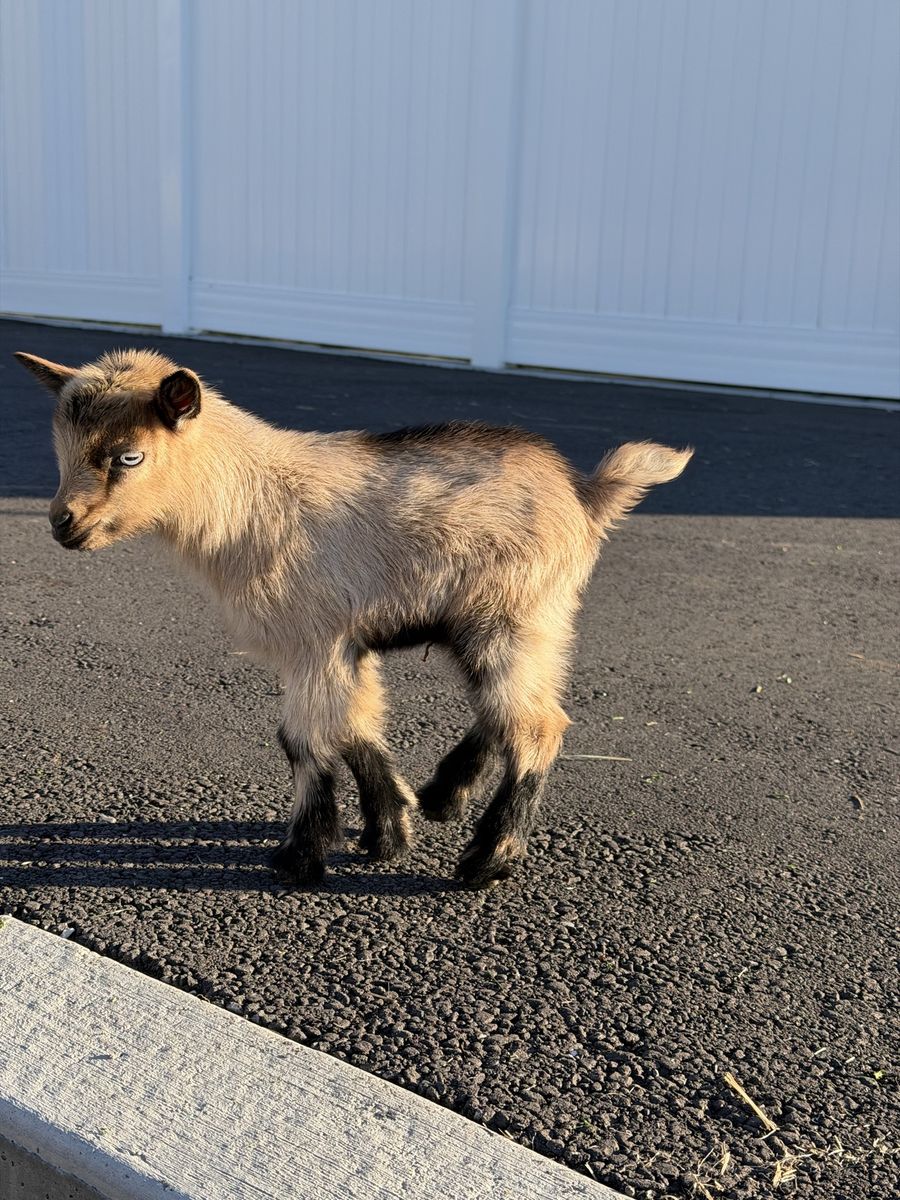 VenmoNigerian Dwarf kids Kidding season has started and we are taking deposits for babies We currently have a tricolored blue eye doeling covered in moon spots born March 29 $250 ($100 deposit) RESERVED Black bucking with moon spots $150 born March 29 ($50 deposit) RESERVED Gold Buckling with blue eyes born April 1 $150 ($100 deposit) Chamoise buckling with blue eyes born April 1 $100 ($50 deposit) White/buckskin doeling with blue eyes born April 9 $250 ($100 deposit) Black and white moonspotted boy born April 9 $150 ($50 deposit) Buckskin boy with blue eyes born April 7 $125 ($50 deposit) Black boy with moon spots $125 ($50 deposit)